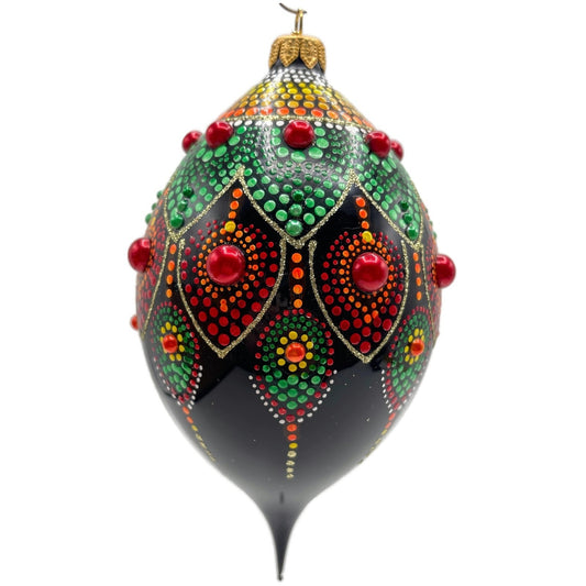 Glitter Lab Black Mandala Drop Polka Dots Red Green Christmas Tree Ornament