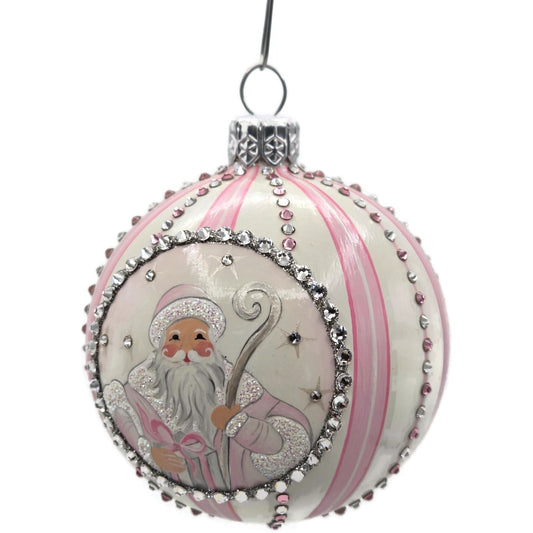 Patricia Breen Beguiling Orb Striped Pink Santa Claus Christmas Ornament CATZ VR