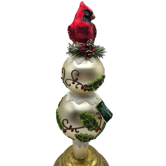 Kurt Adler Holiday And Cardinal Red Bird Glass Christmas Tree Topper 13 Inch