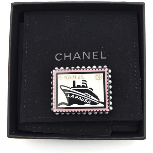 Chanel 19C La Pausa Yacht Stamp Brooch Pin CC Logo Cruise Ship Pea AB0921 Y47494