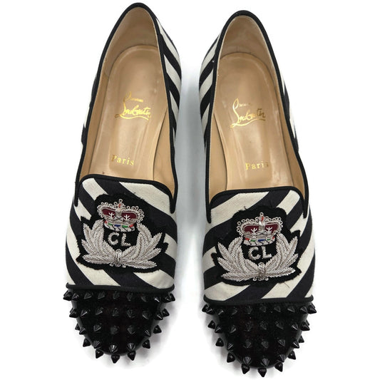 Prada Black Leather Loafer 1D9558 Gold Studs Flats Square Toe Womens Size EU 39