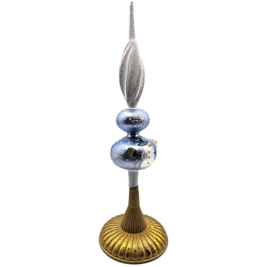 Patricia Breen Miniature Snowman Finial Blue Matte Christmas Topper Ornament