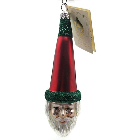 Patricia Breen Wink of His Eye Red Hat Santa Head Green Christmas Tree Ornament