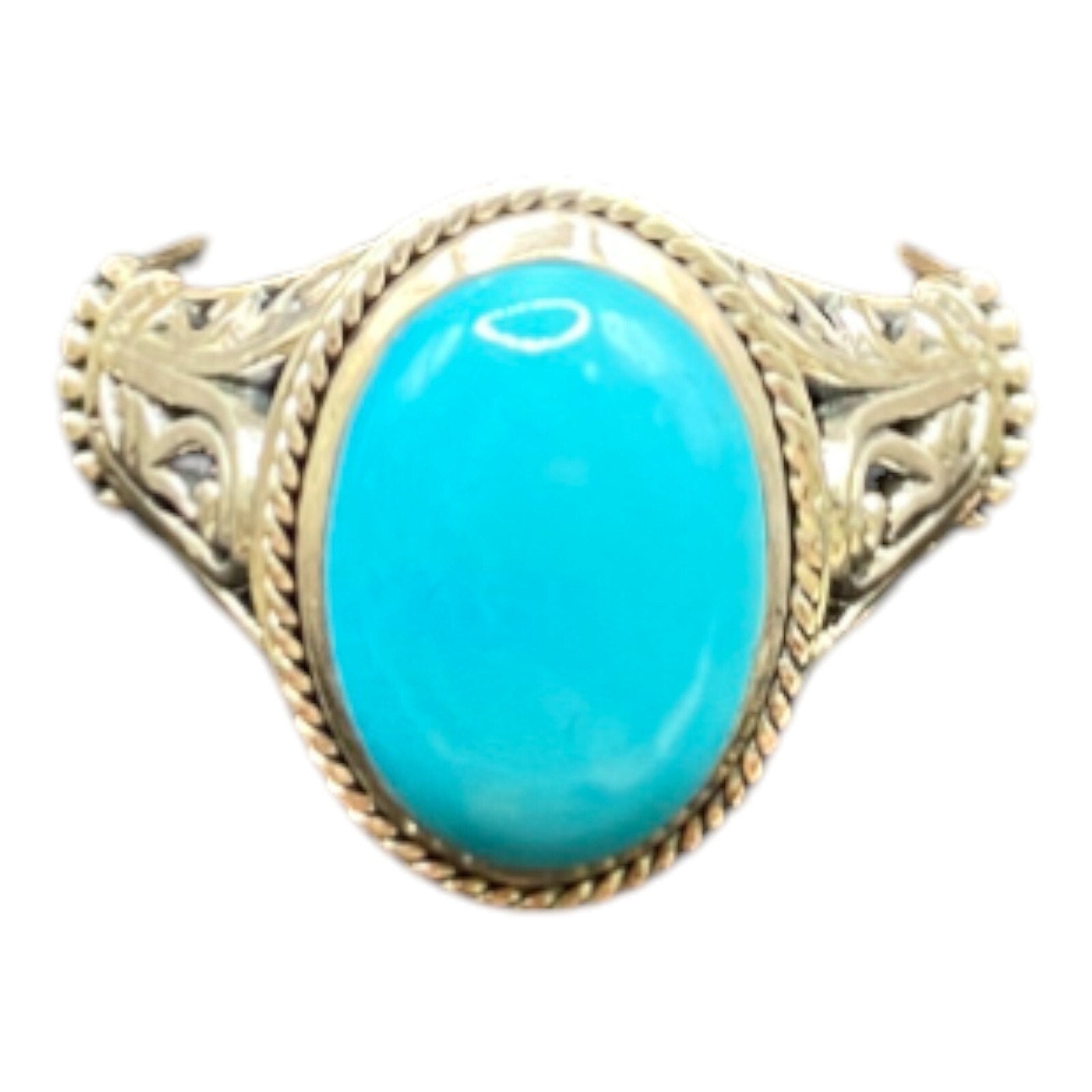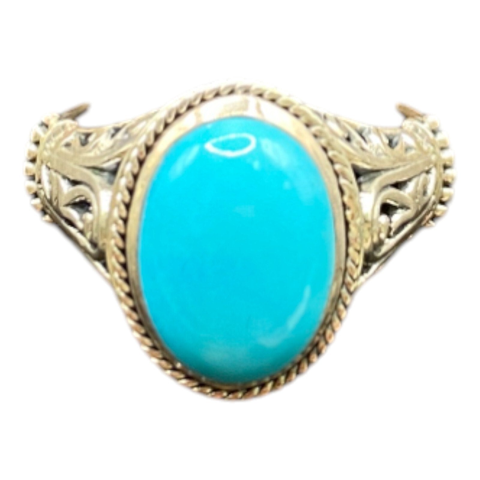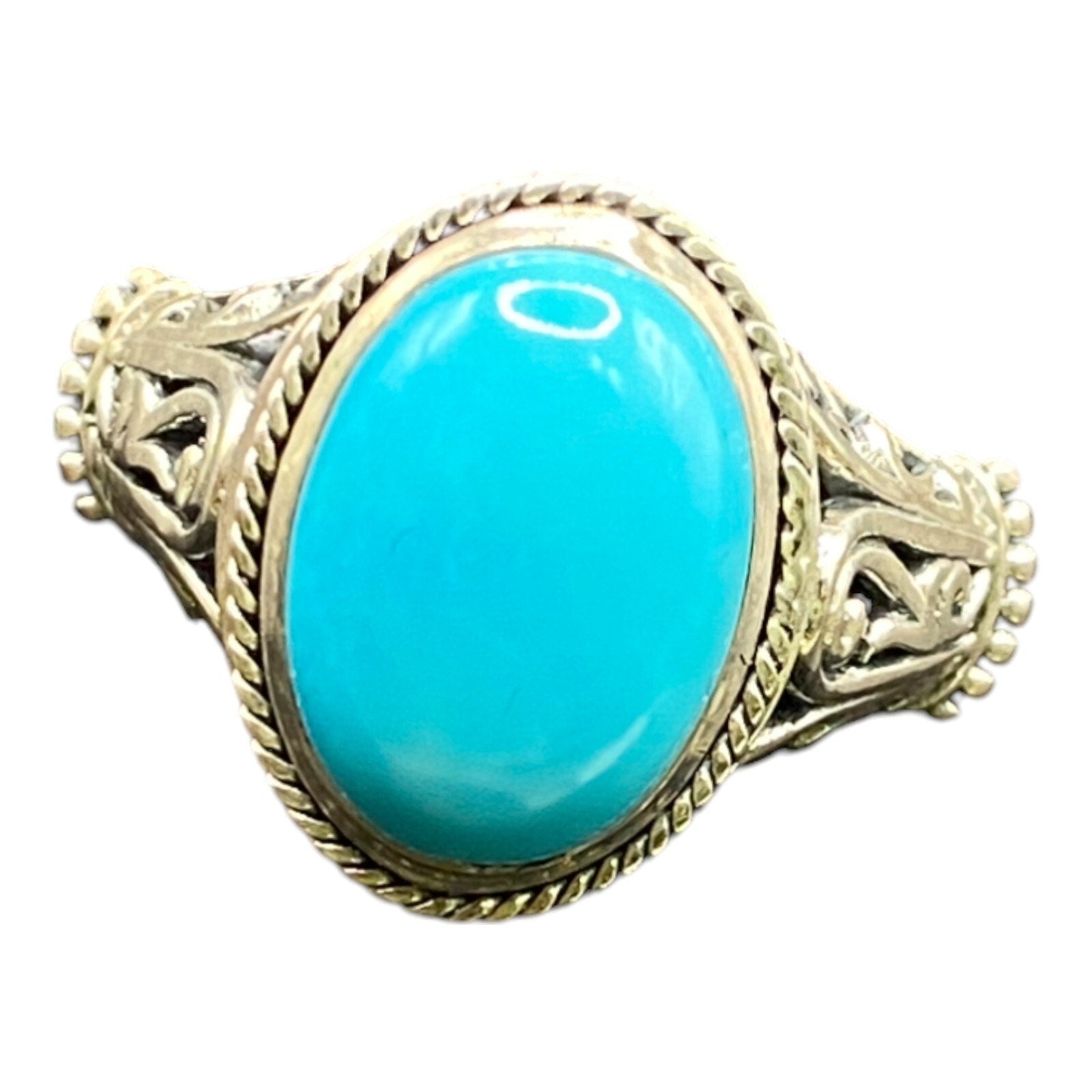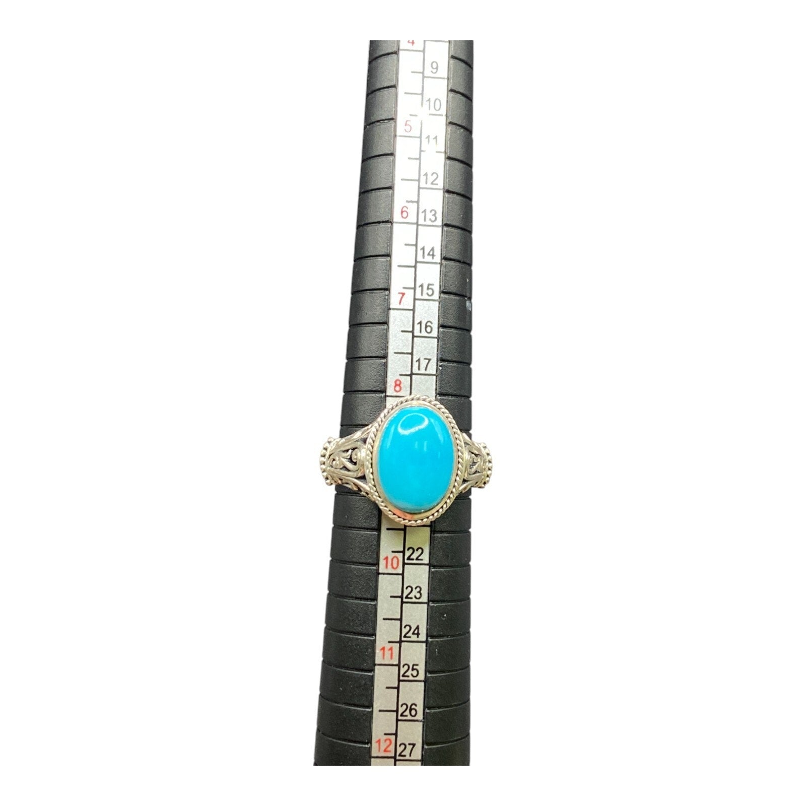 925 Sterling Silver Filigree Oval Turquoise Gemstone Cocktail Ring Size 8 3/4