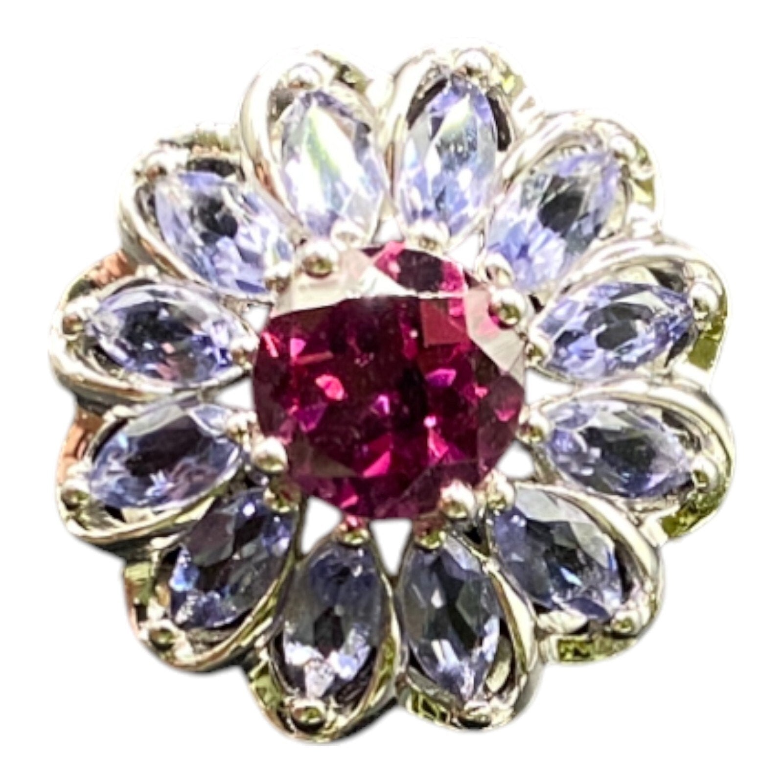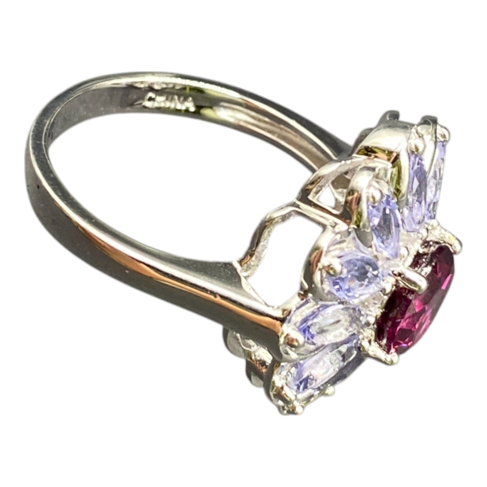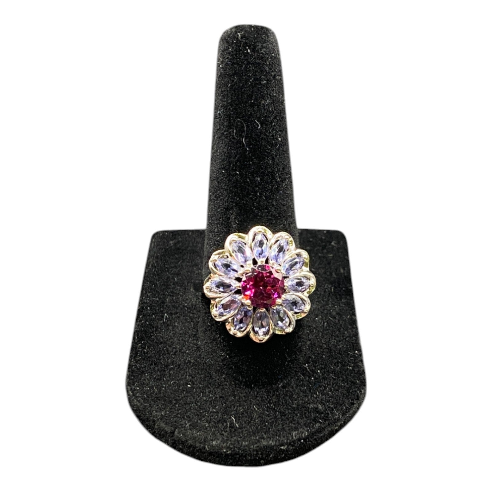 925 Sterling Silver Prong Set Blue Purple Gemstone Flower Cocktail Ring Size 8