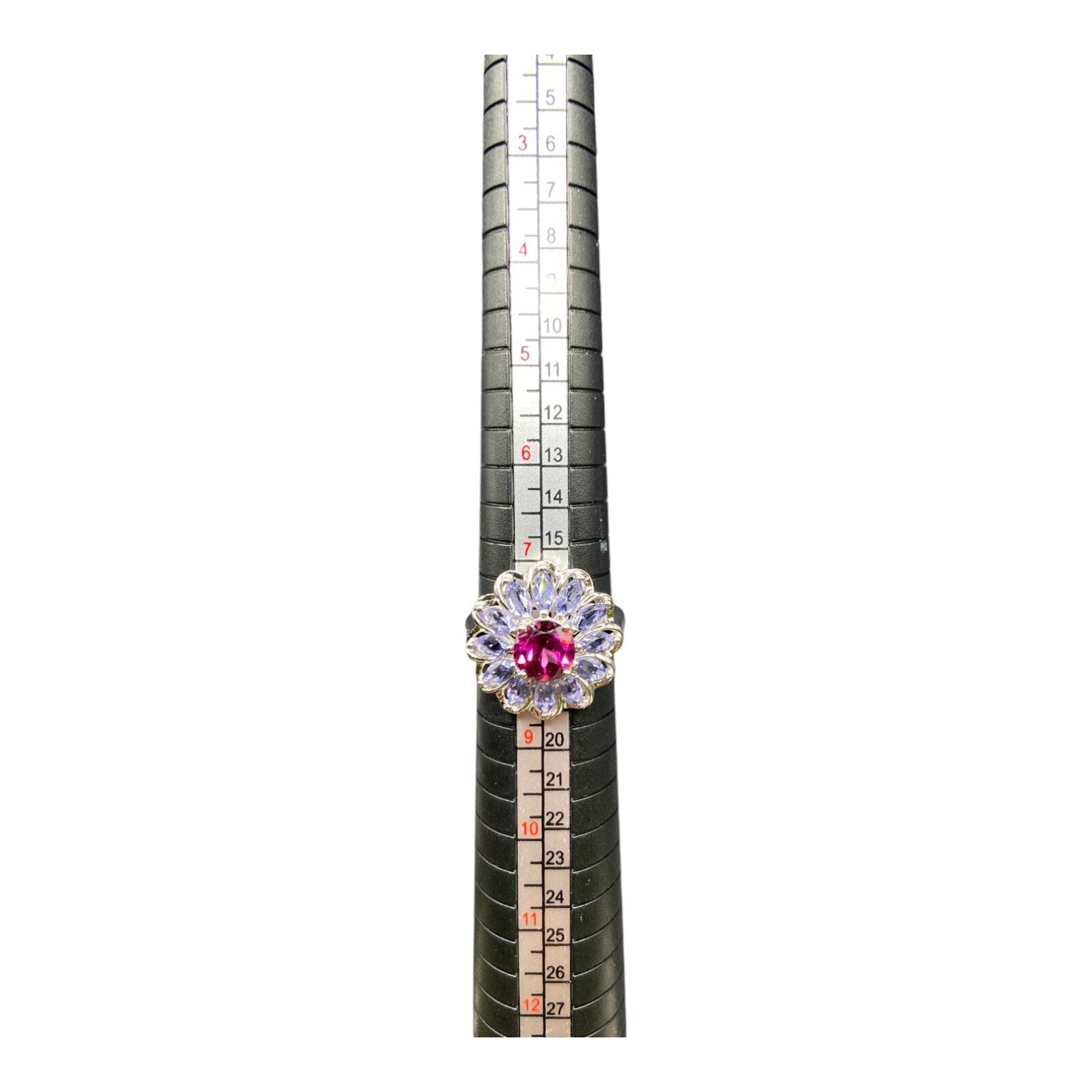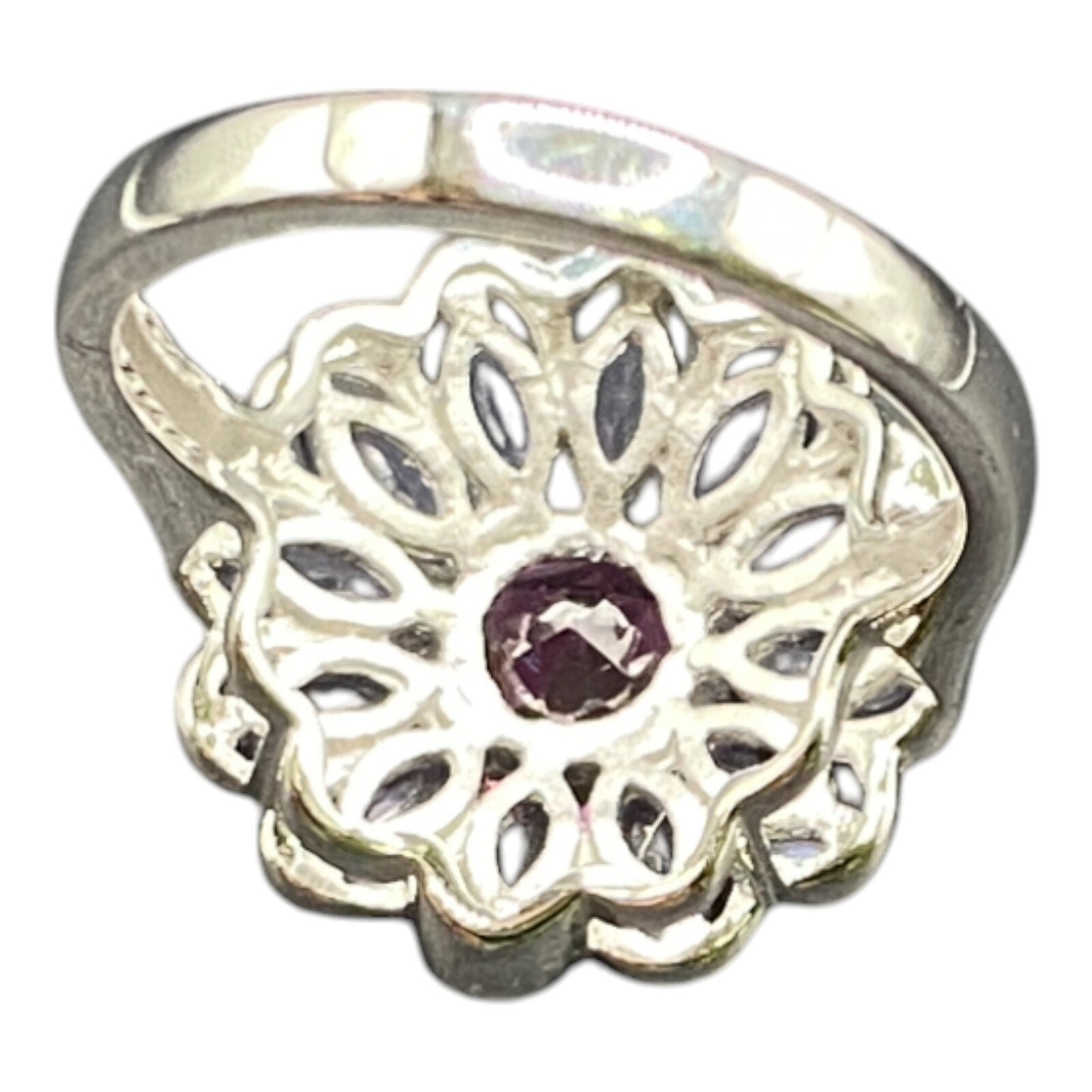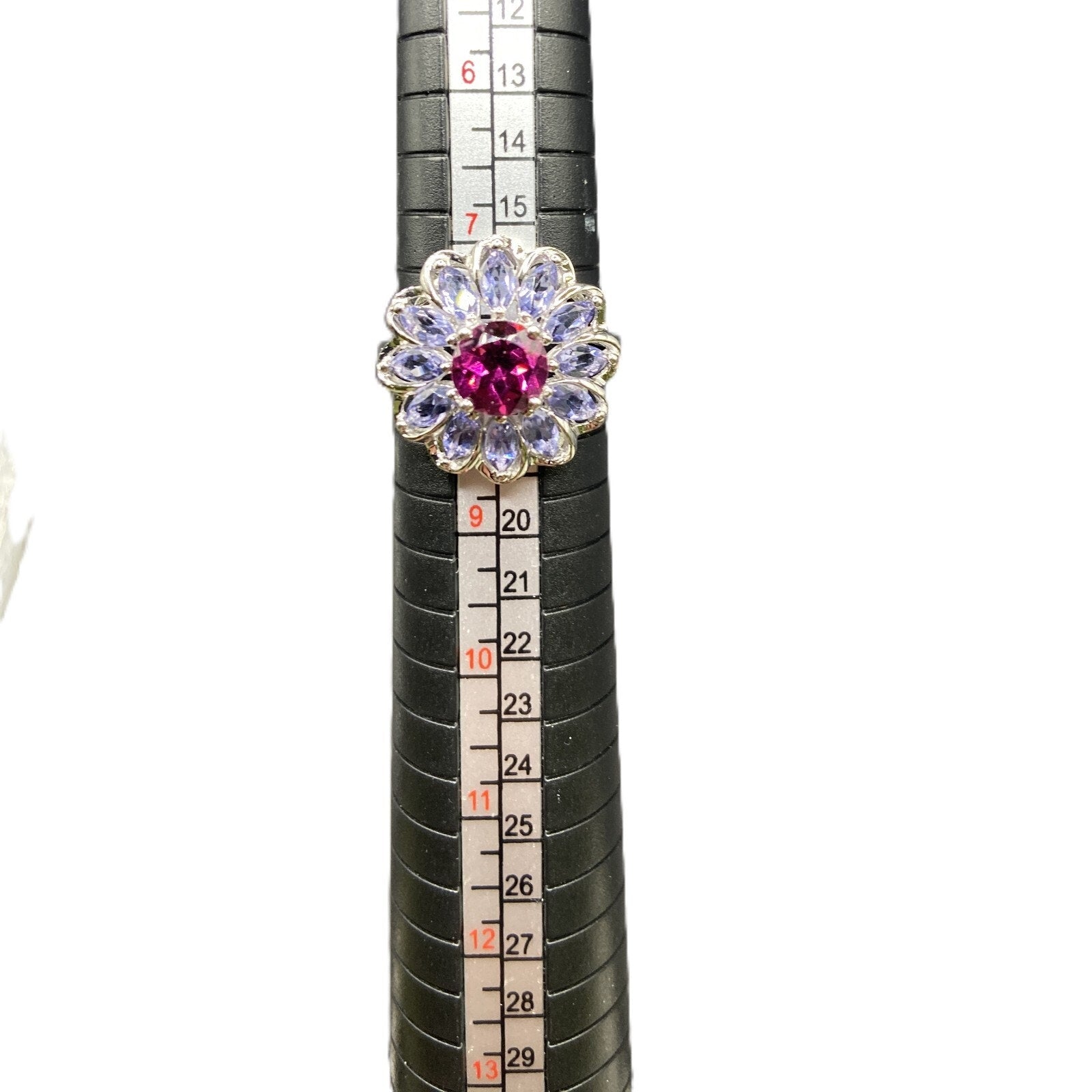 925 Sterling Silver Prong Set Blue Purple Gemstone Flower Cocktail Ring Size 8