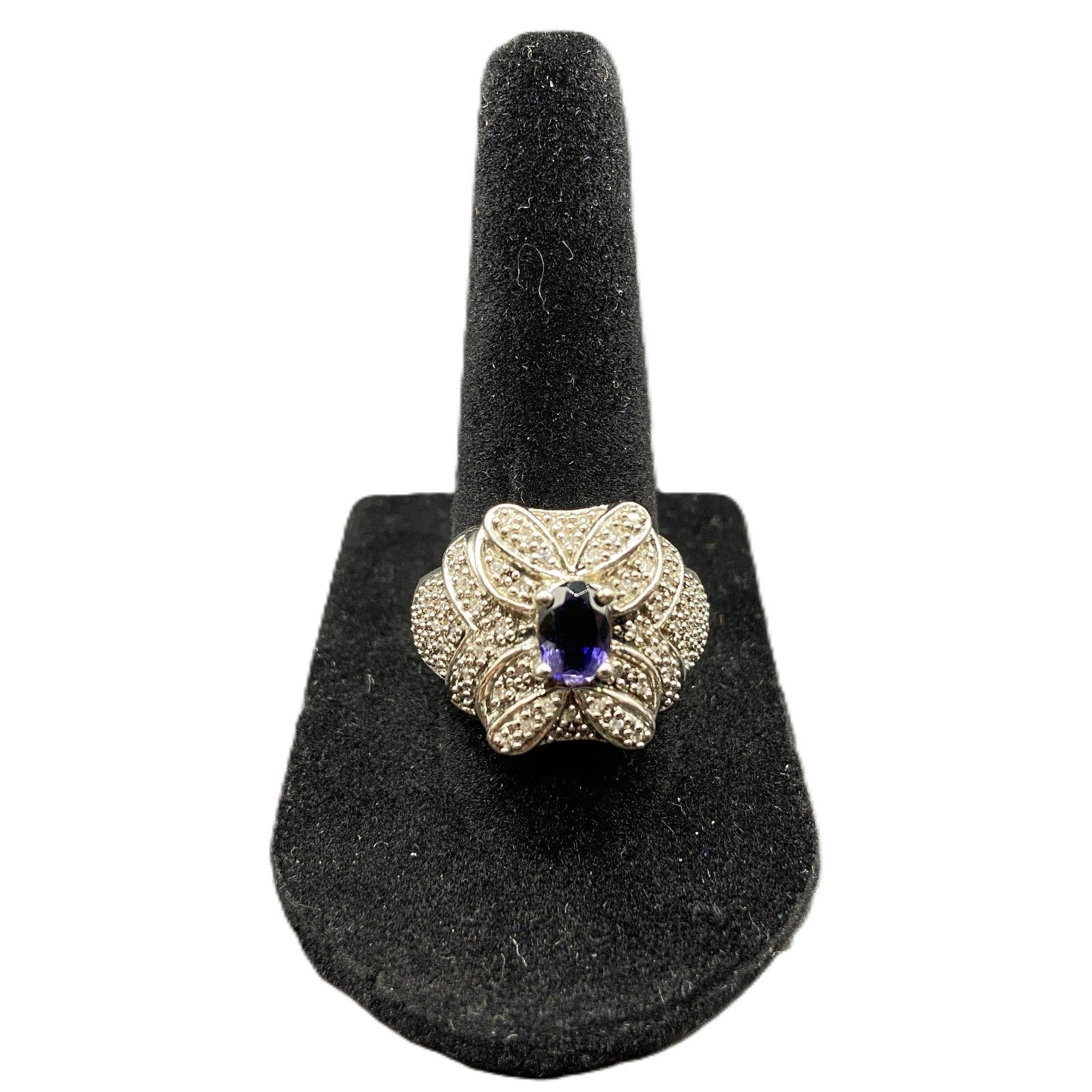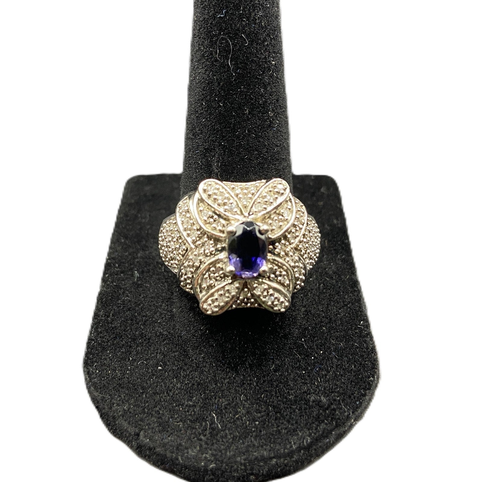 925 Sterling Silver Prong Set Tanzanite Gemstone Ring Made in Thailand Size 8