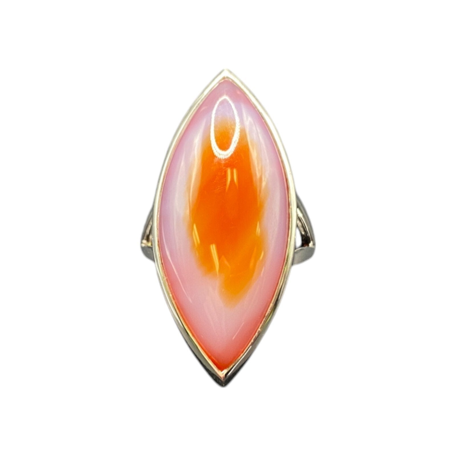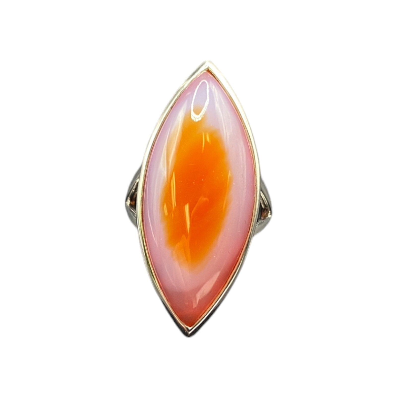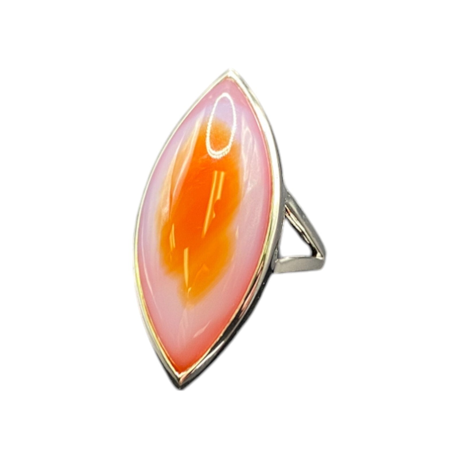 Marquise Agate Gemstone Ring 925 Sterling Silver Orange Pink Made in China Size 9 IK