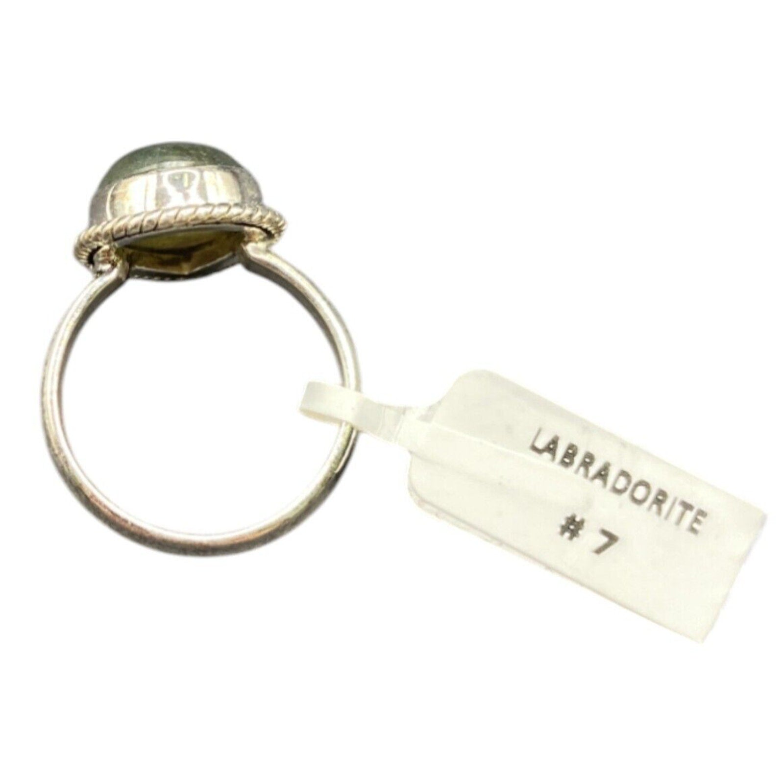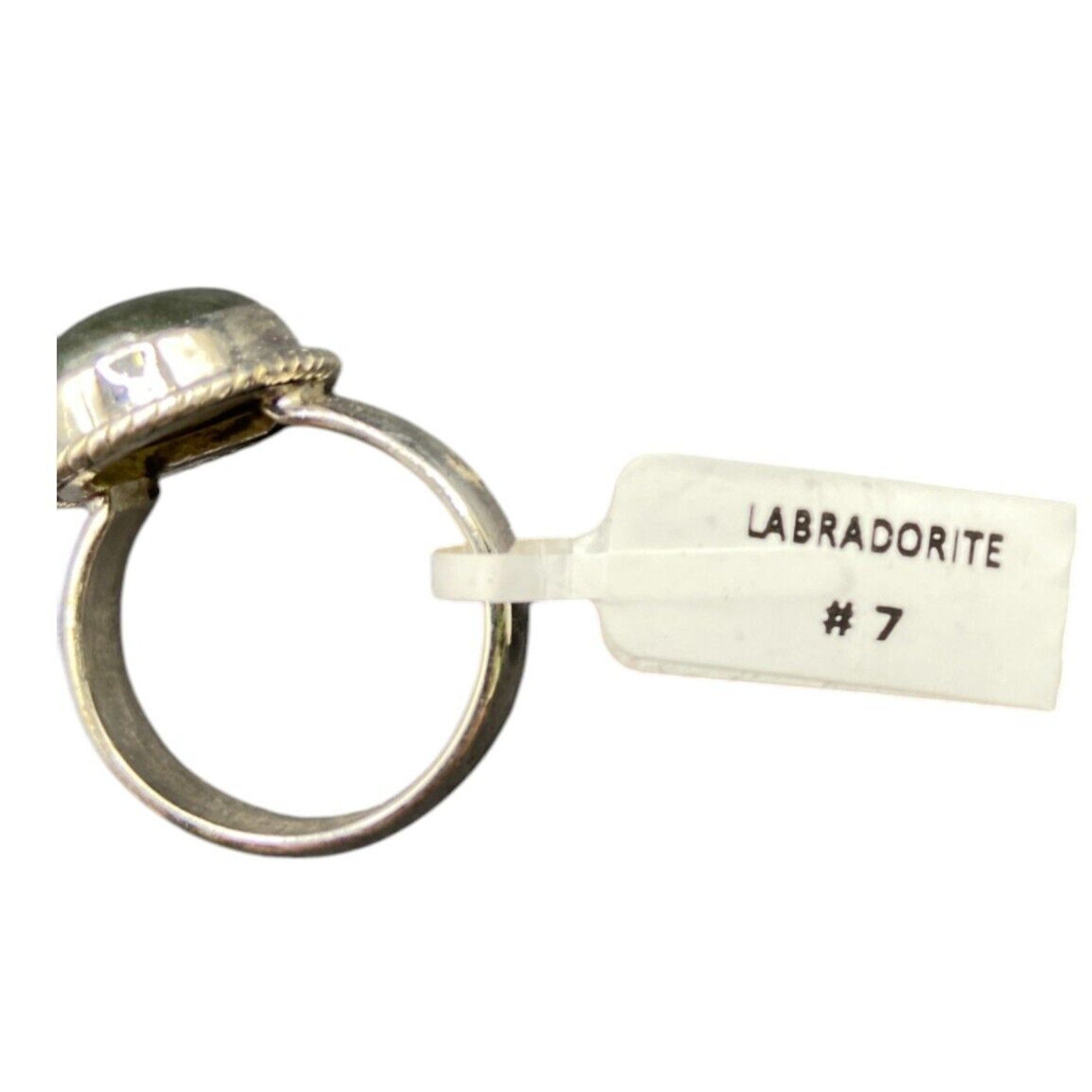 925 Sterling Silver Ring Green Teardrop Labradorite Gemstone Ring Size 6 3/4 NWT