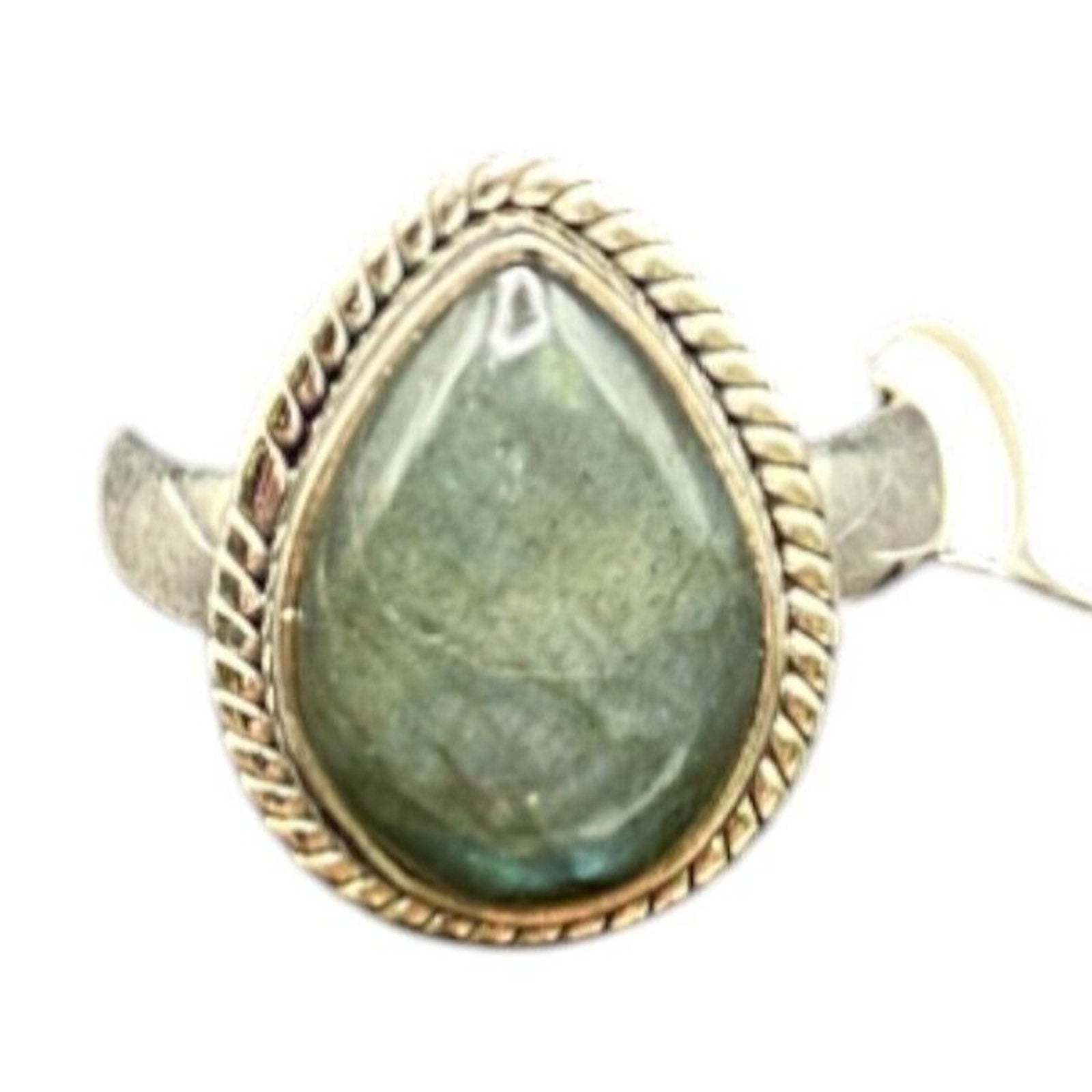 925 Sterling Silver Green Teardrop Labradorite Gemstone Ring Size 6 3/4 NWT