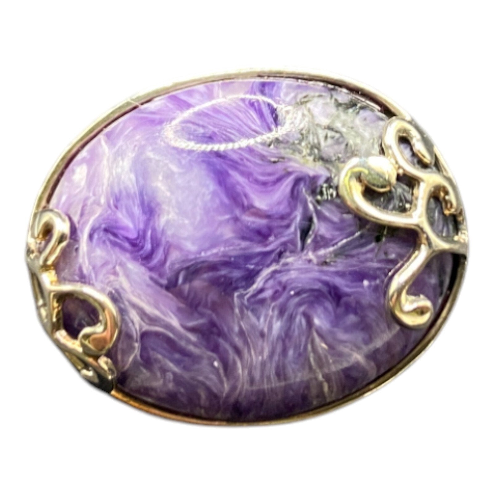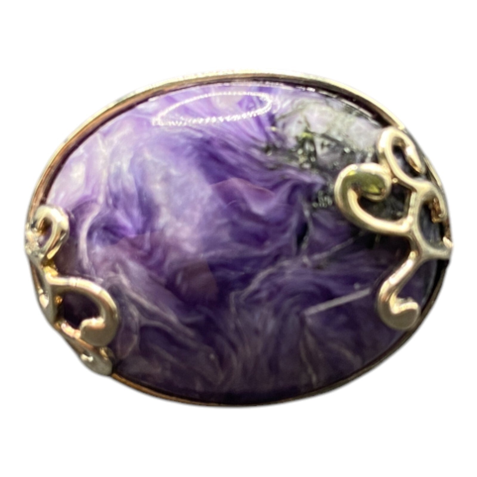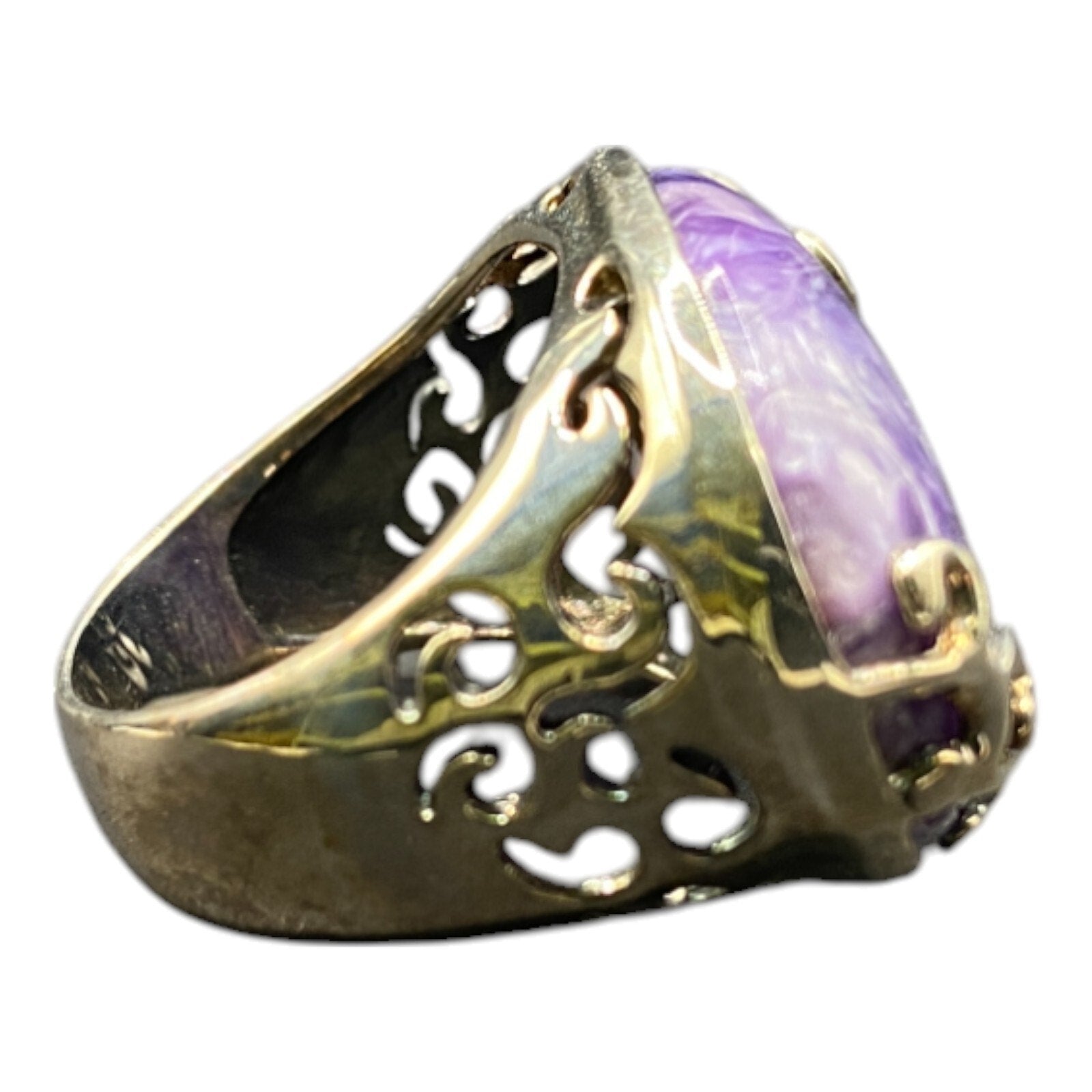 925 Sterling Silver Ring Oval Marbled Purple Russian Charoite Crystal Size 7