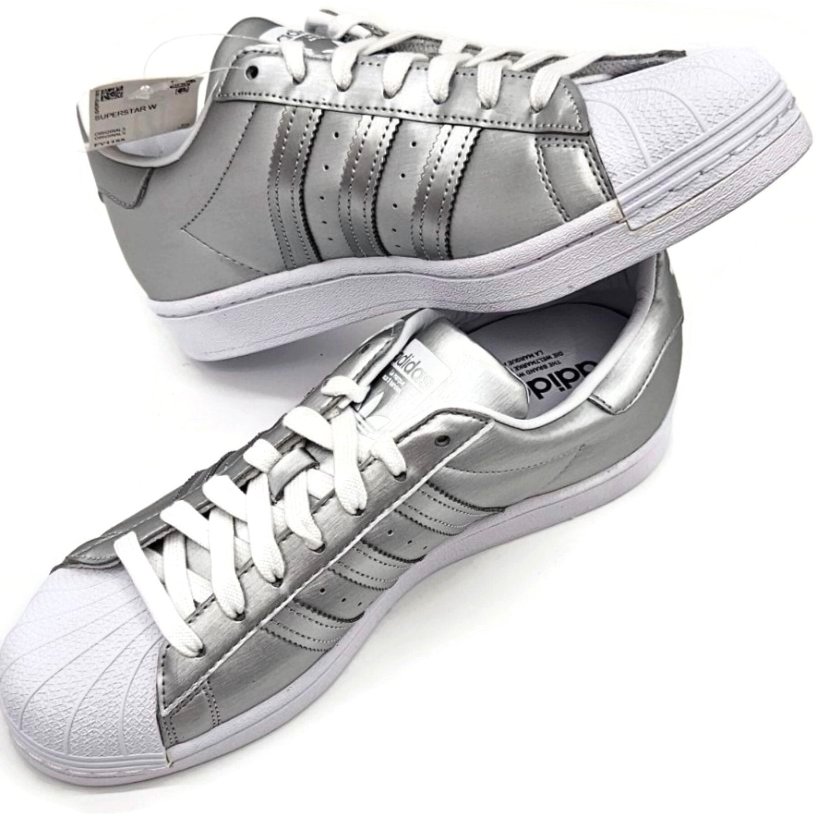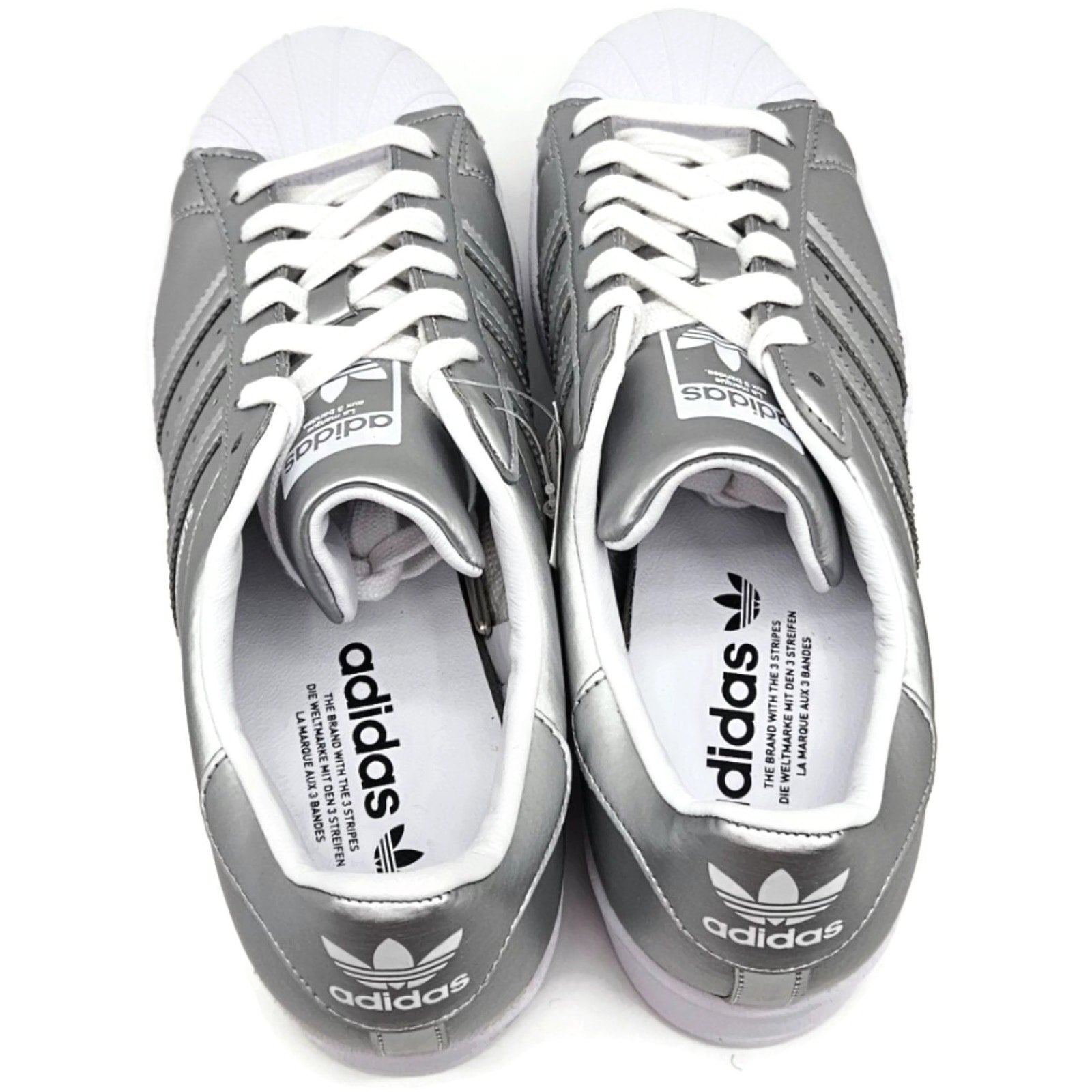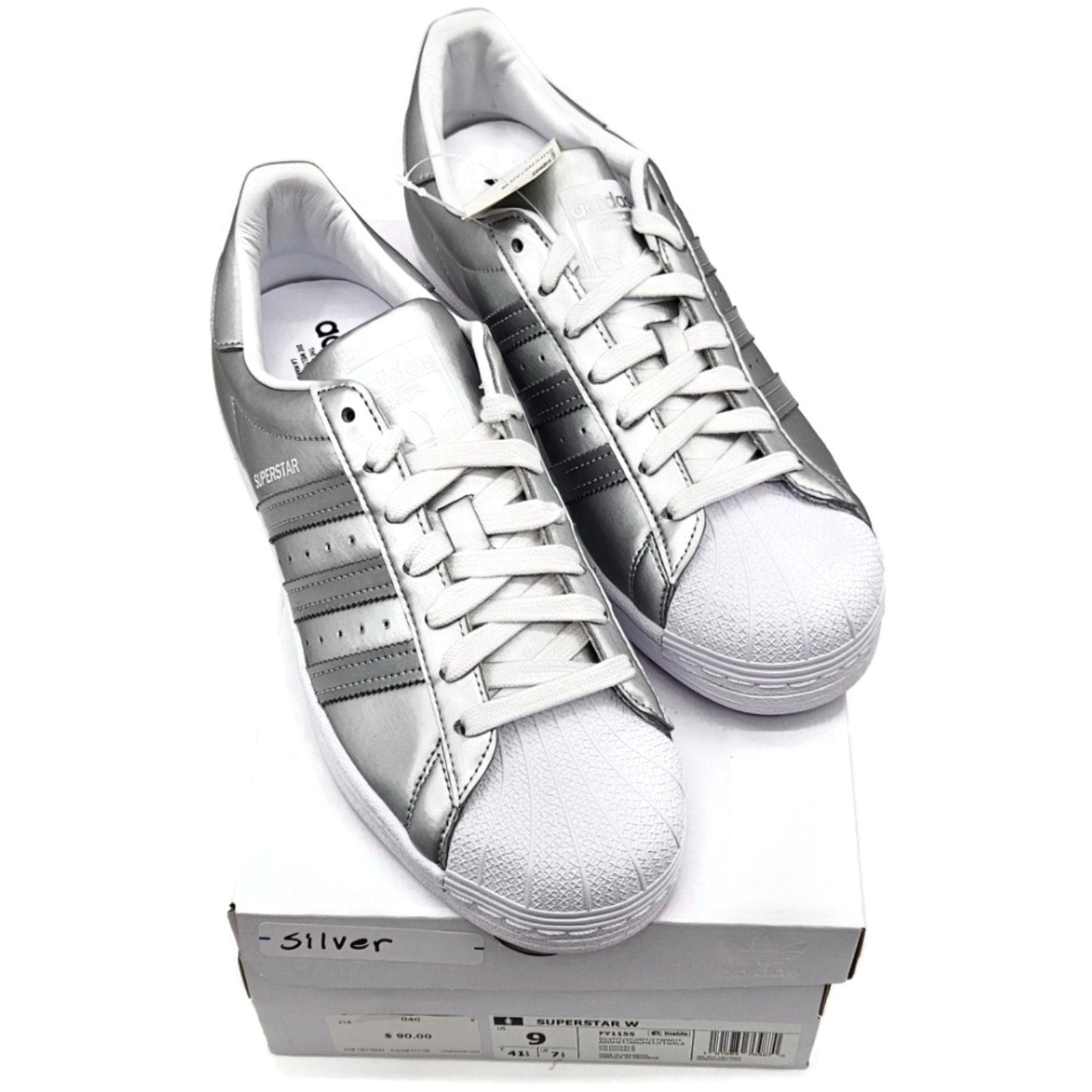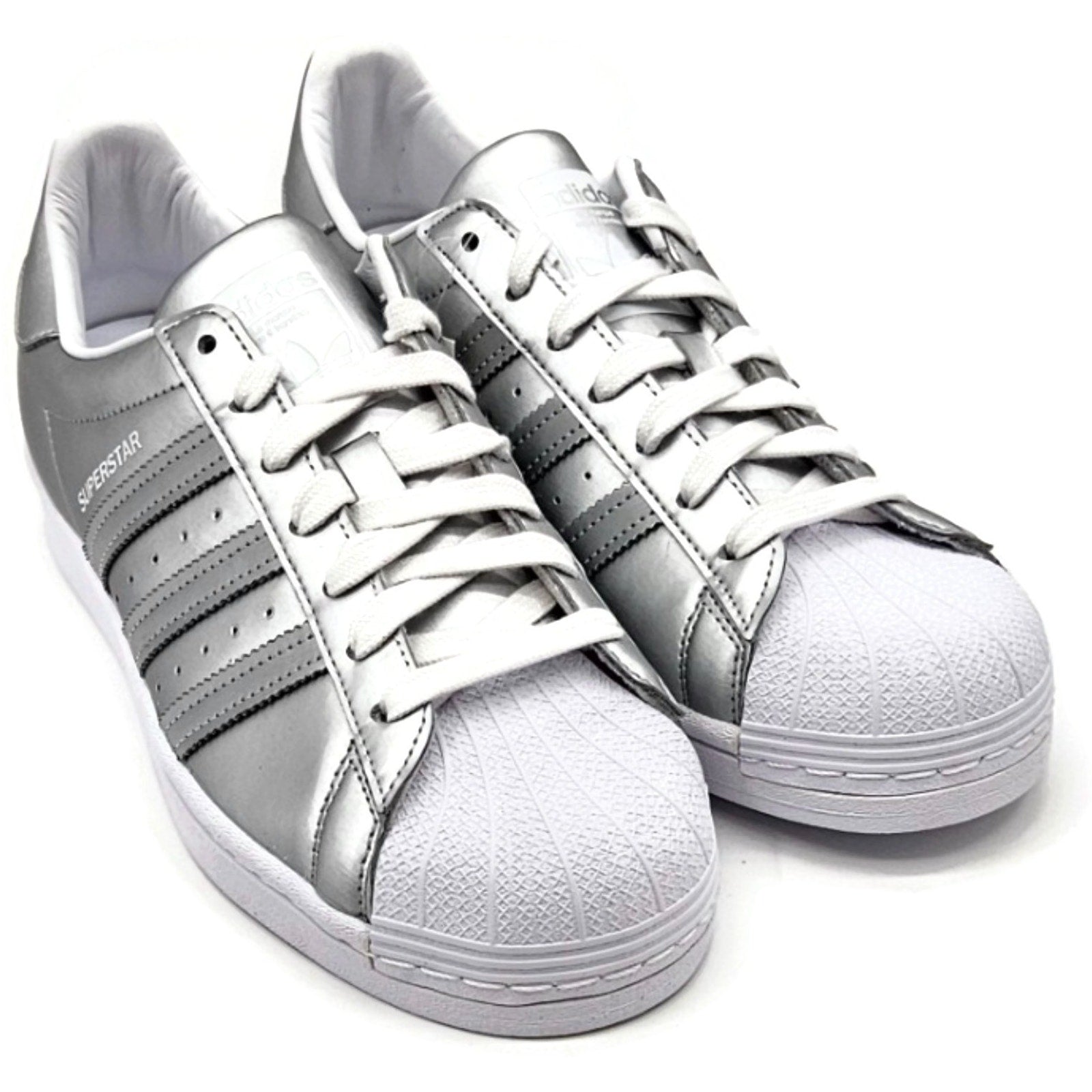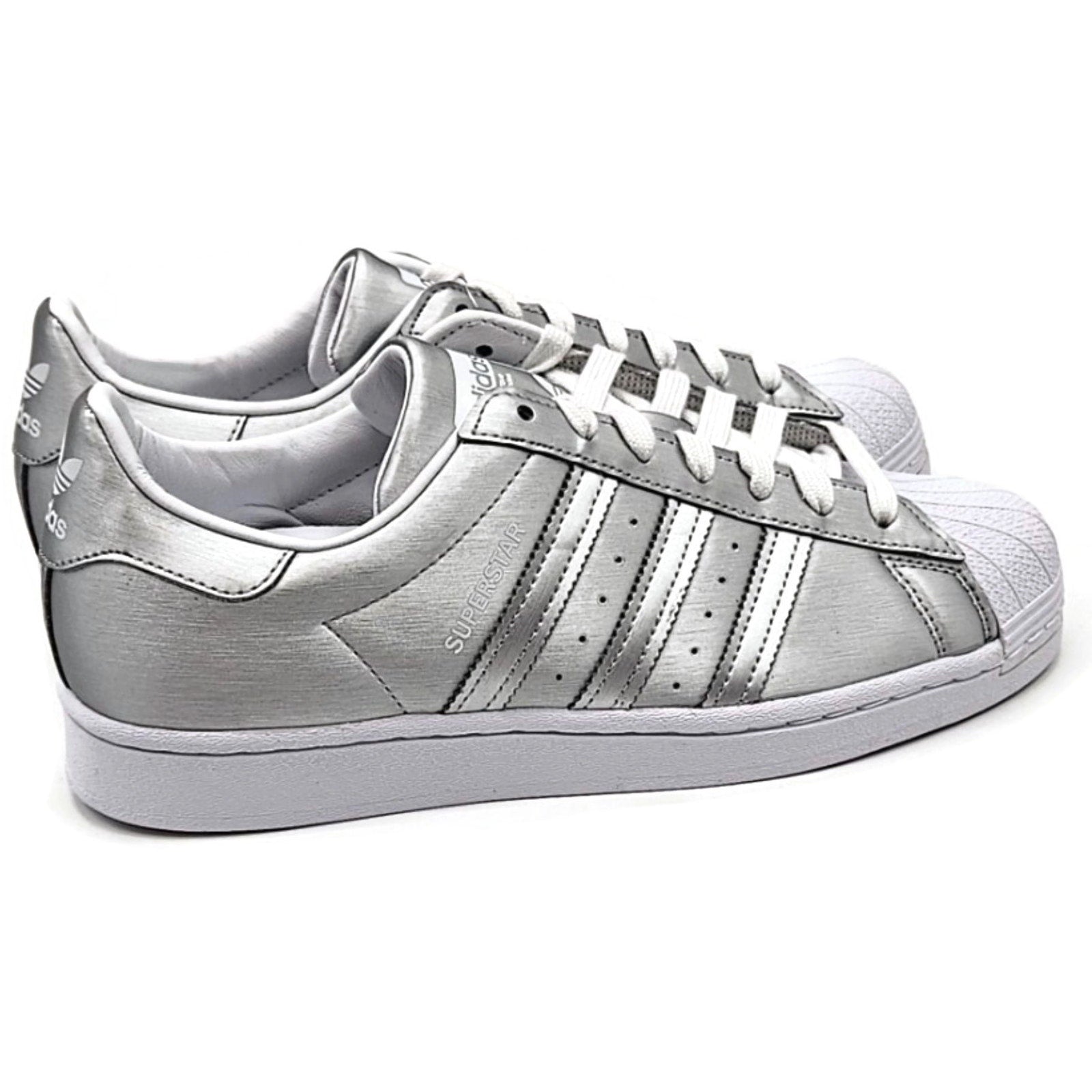 Adidas Superstar Silver Metallic Leather Shoes Ladies Size 9 Shell Toe FY1155