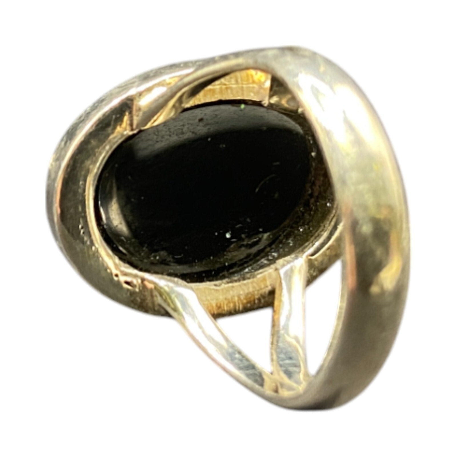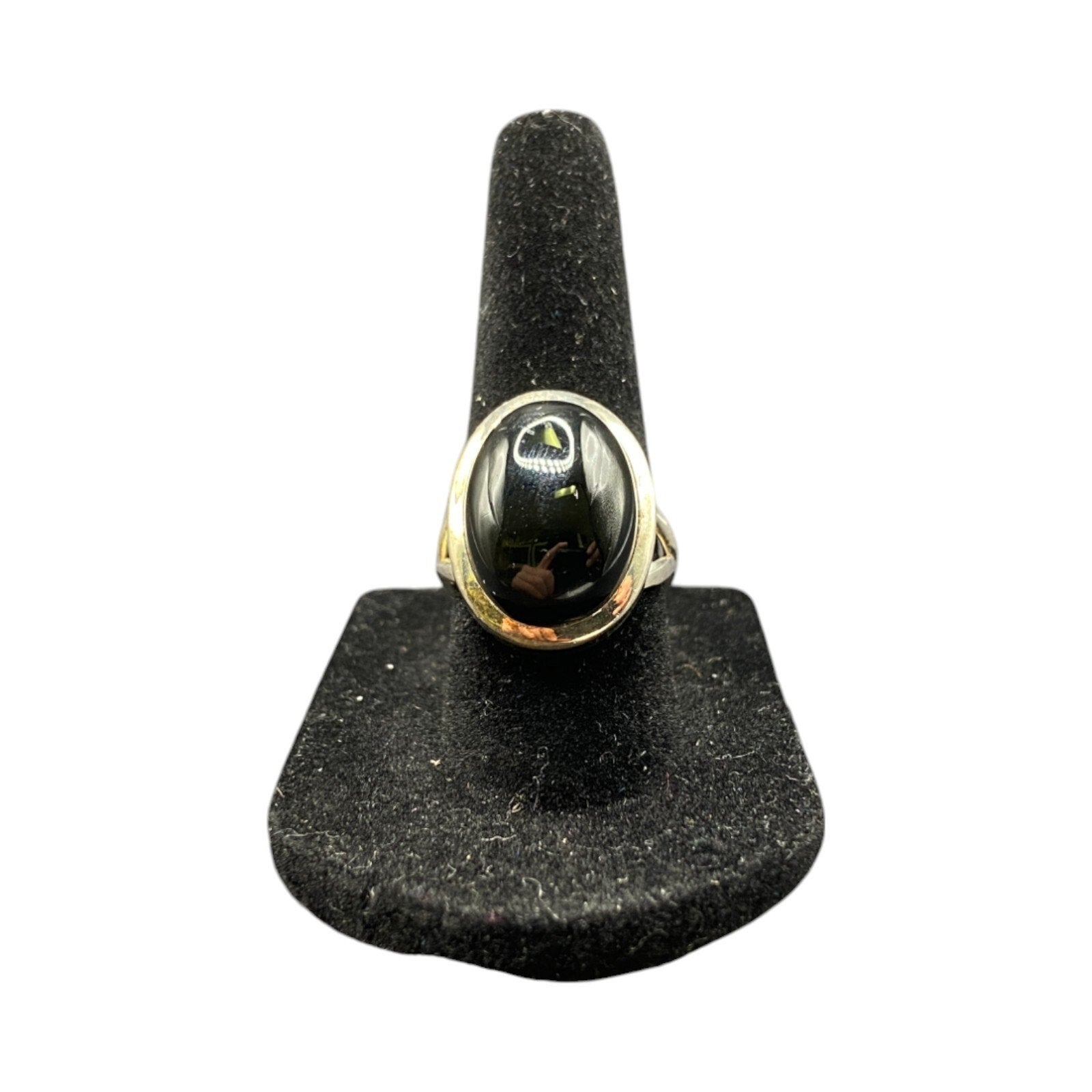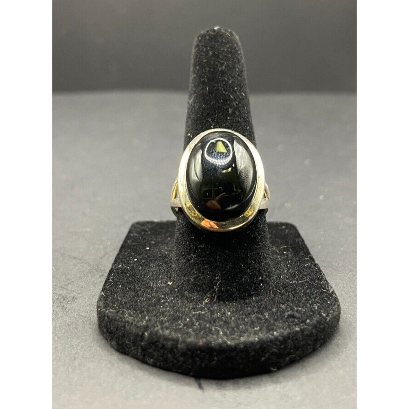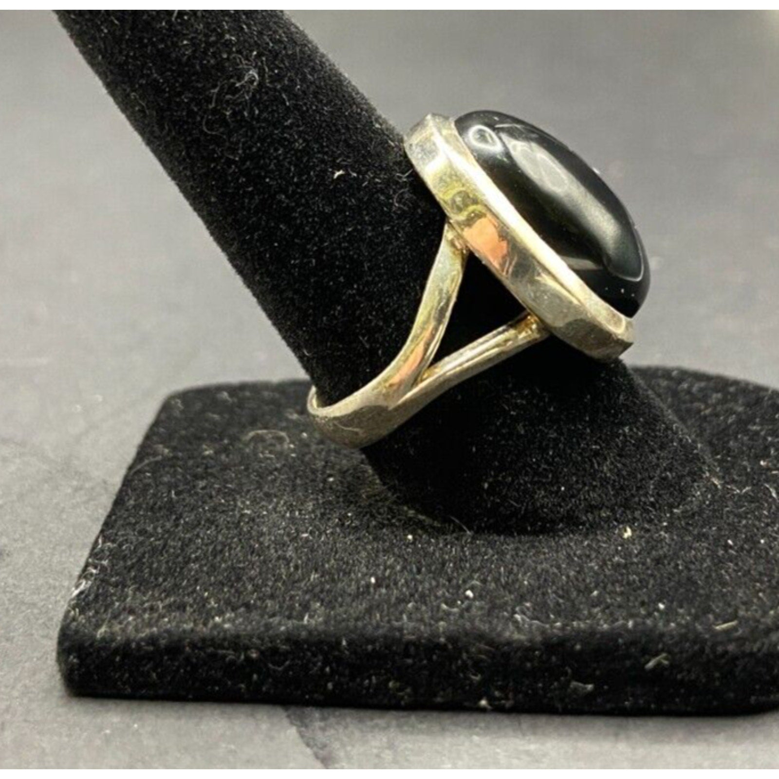Black Onyx Cocktail Ring Oval Cabochon Gemstone Silver Tone Metal Size 7