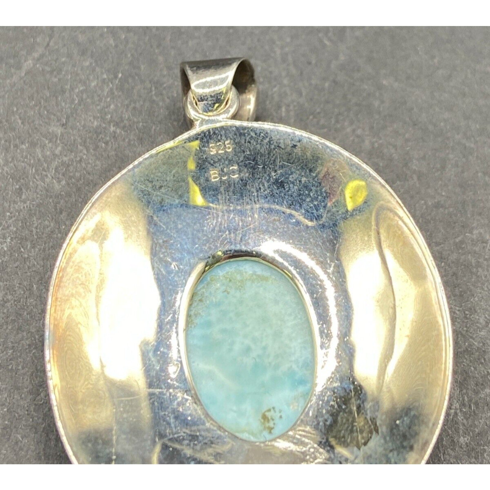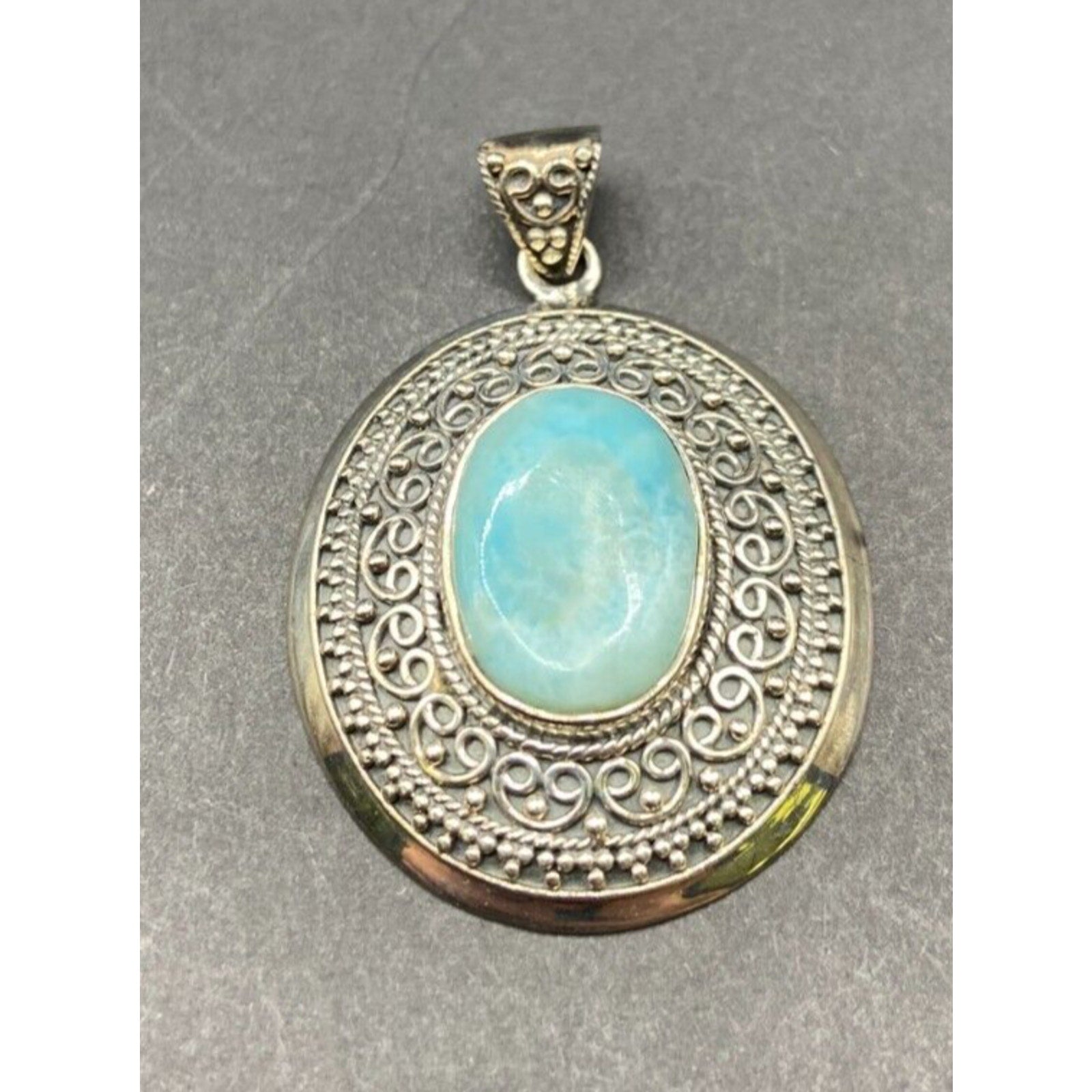 Blue Quartz Gemstone Pendant Oval Cabochon 925 Sterling Silver Filigree BJC