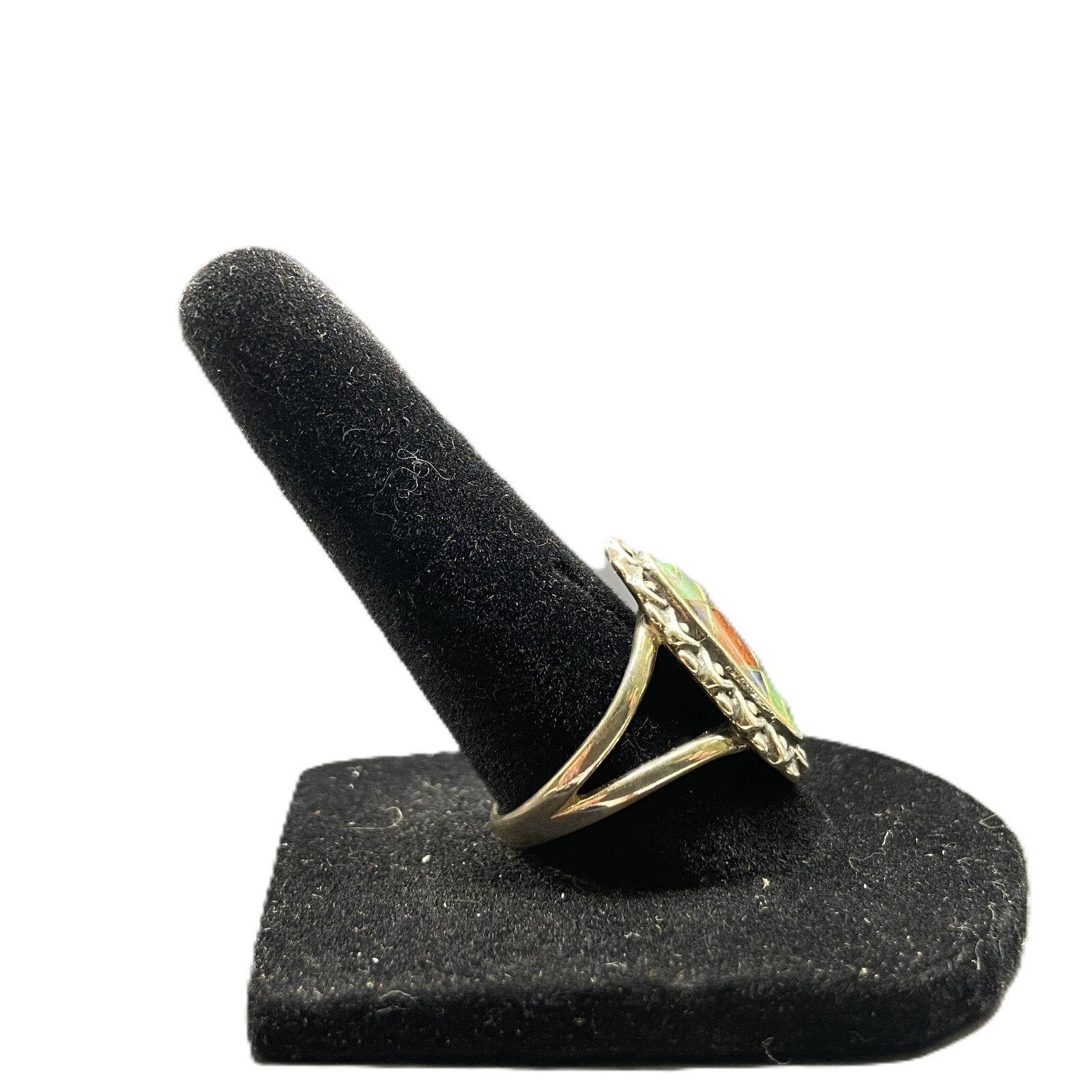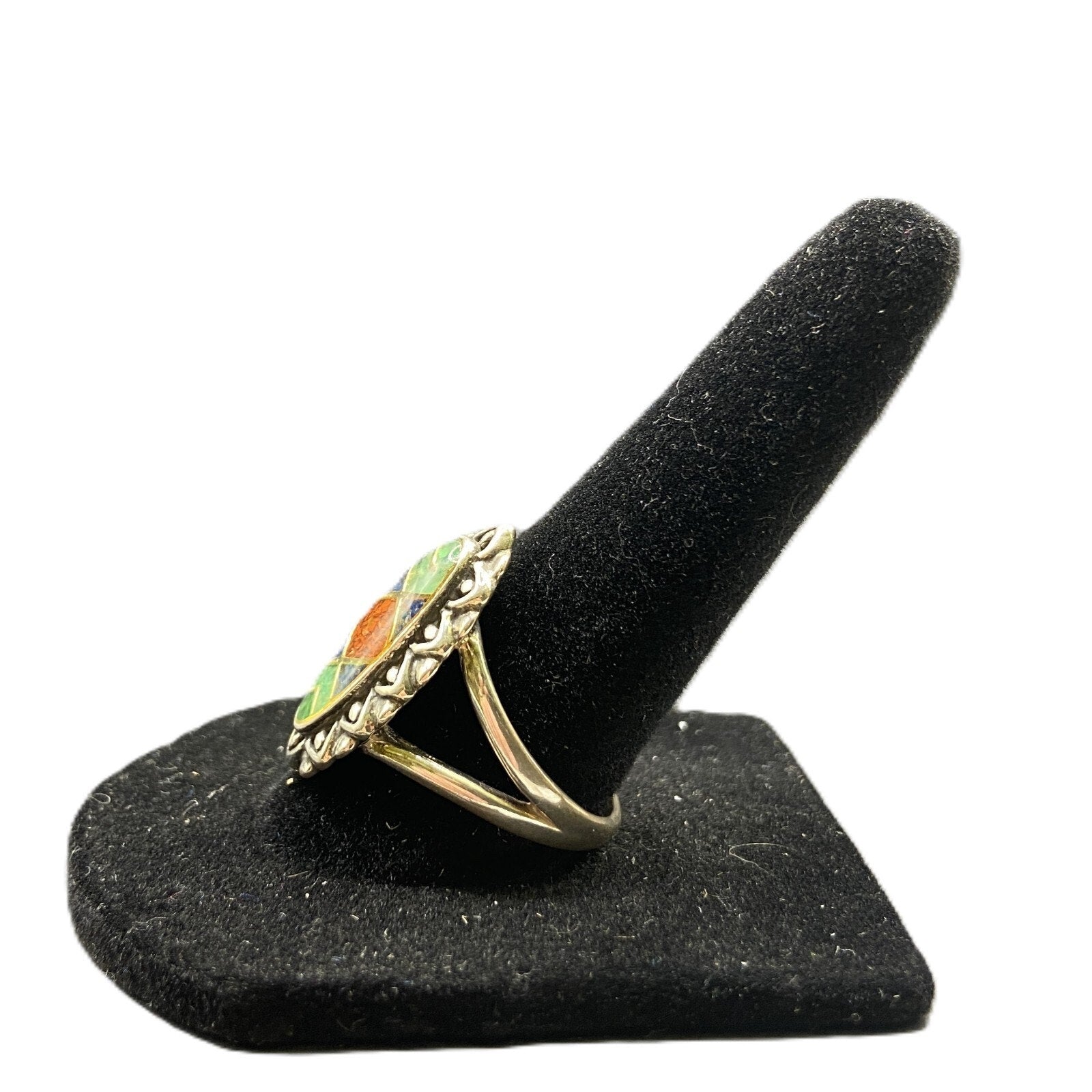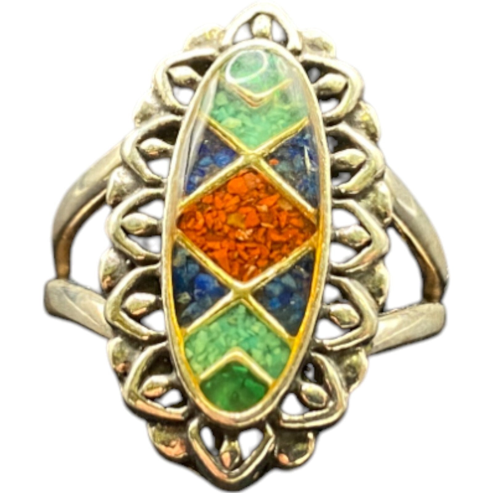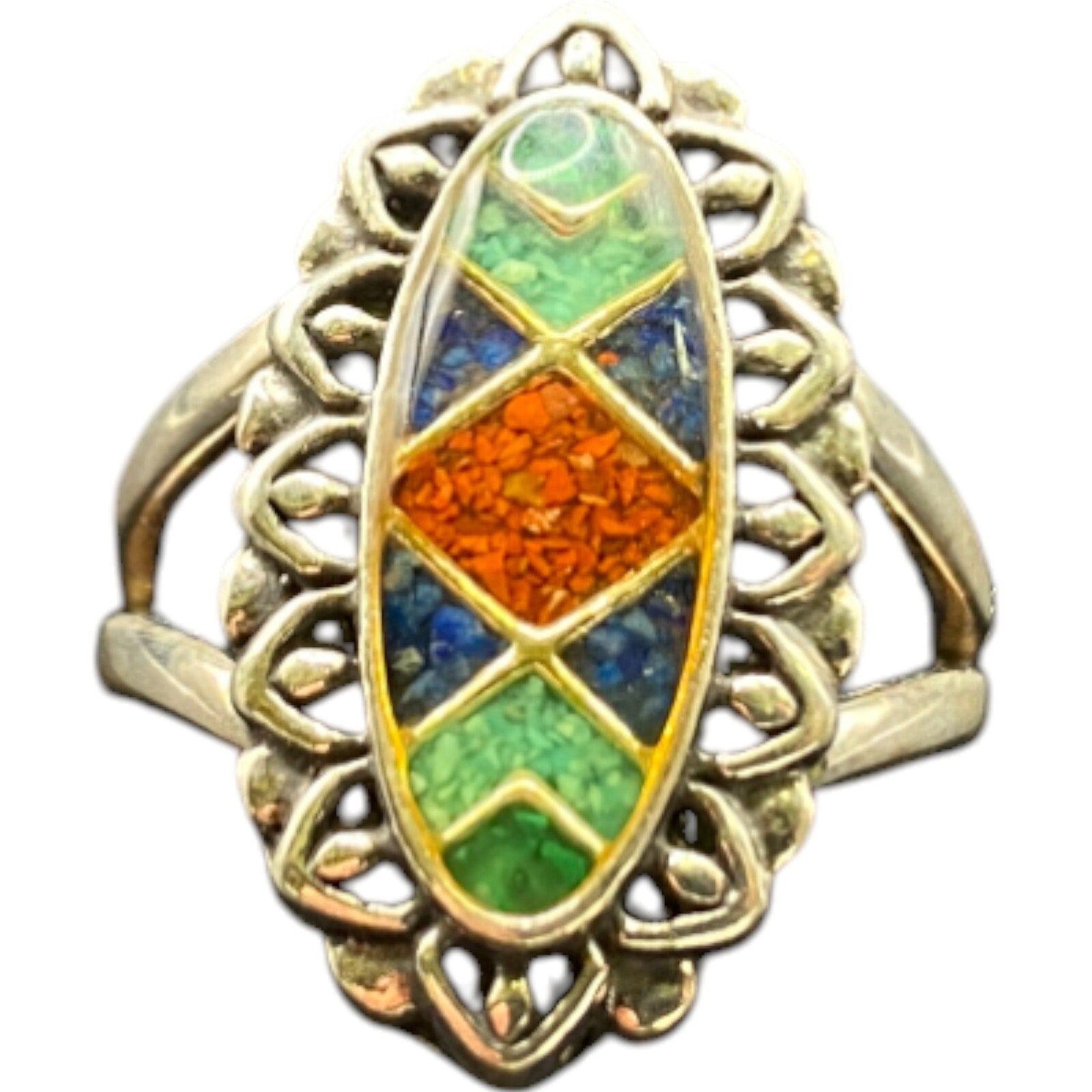 Carolyn Pollack 925 Sterling Silver Ring Oval Mosaic Multi-stone Chips Size 8