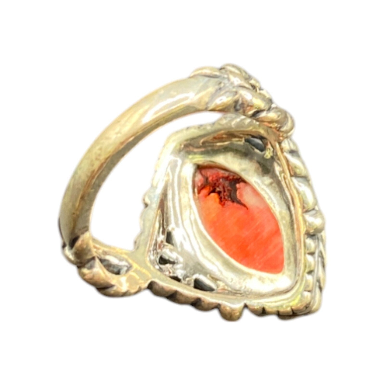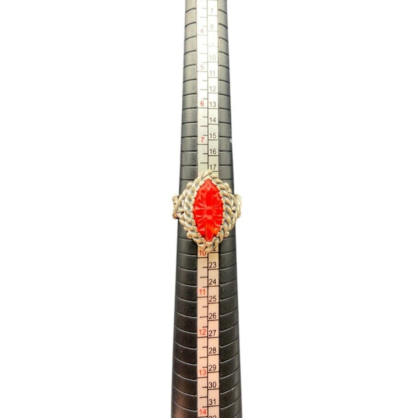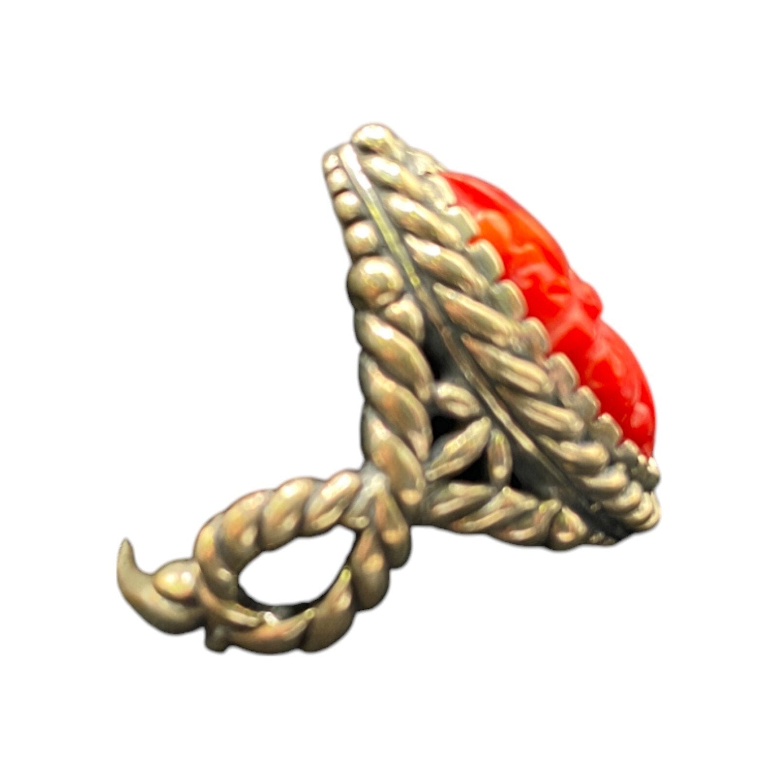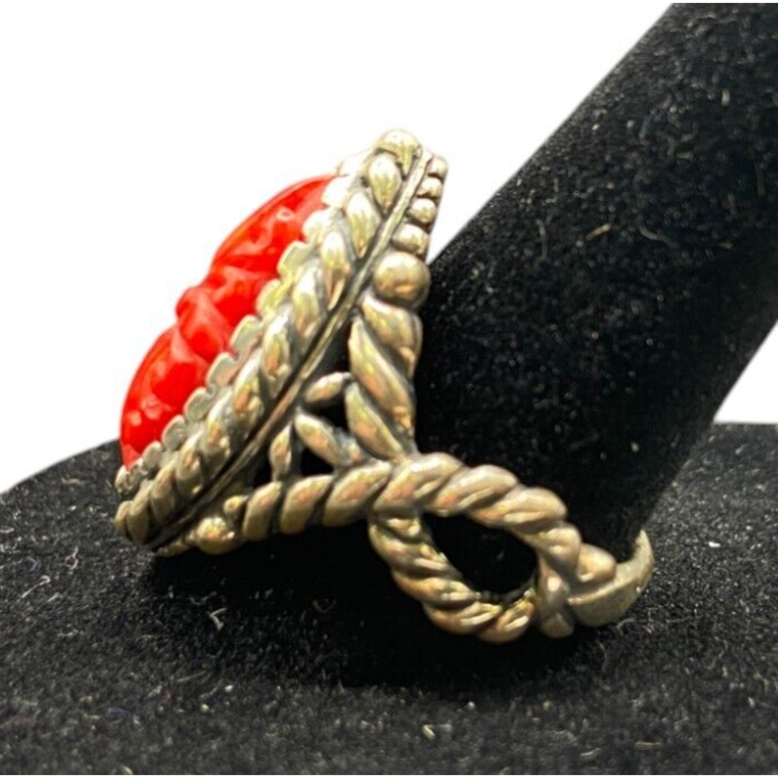 Carolyn Pollack Ring 925 Sterling Silver Red Coral Southwestern Carved Size 9