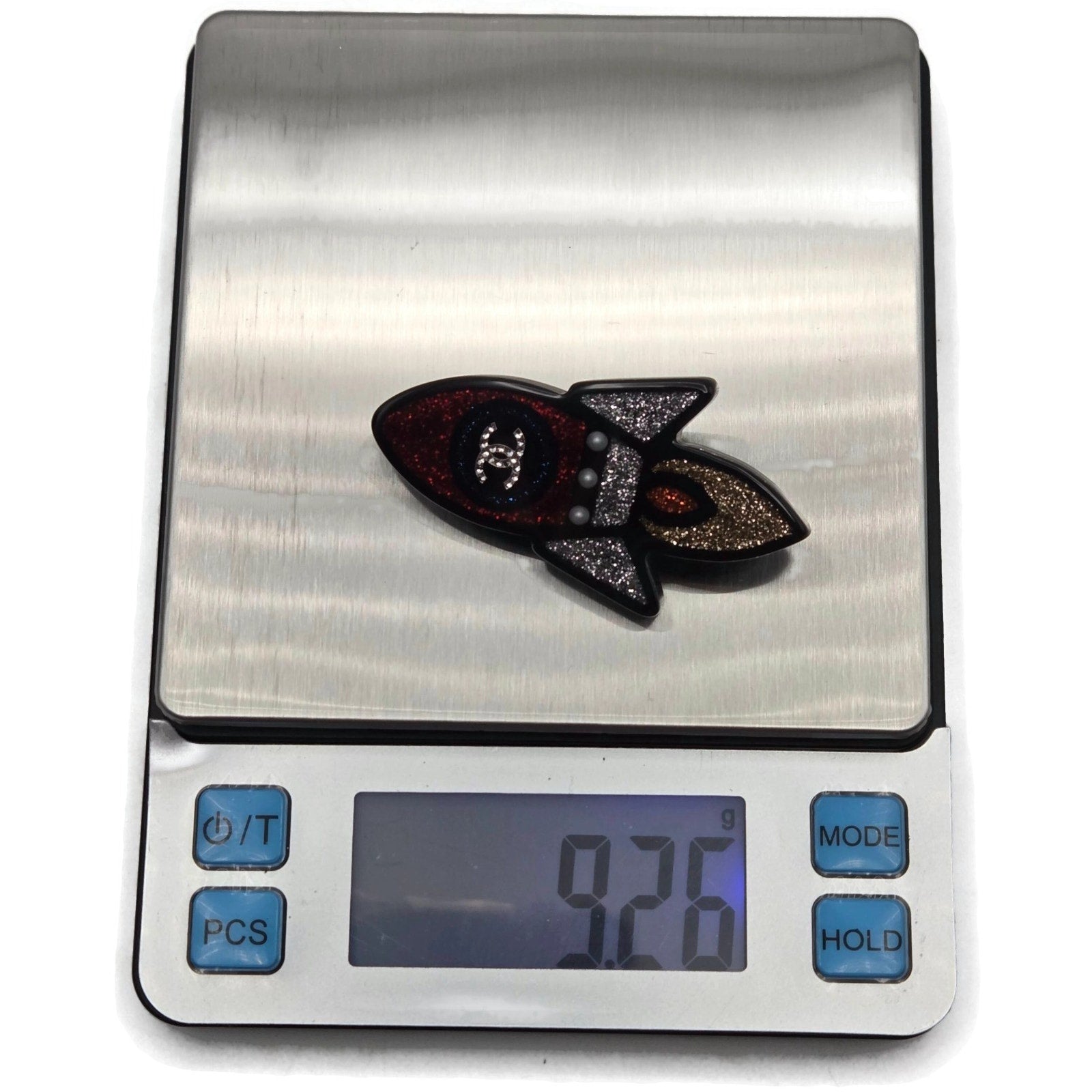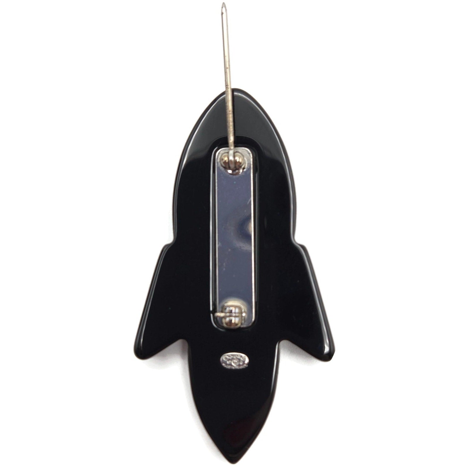 Chanel Rocket Brooch 17S A89416 Space Ship Pin Black Red Grey Glitter Rare Resin