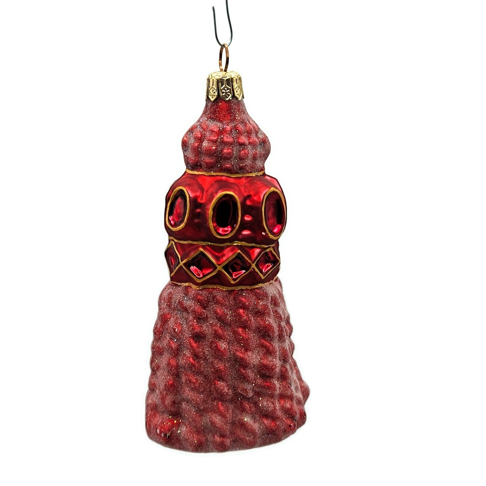 This ornament measures approximately 5 inches tall, is individually made and hand painted by skilled glassworkers in Germany.
