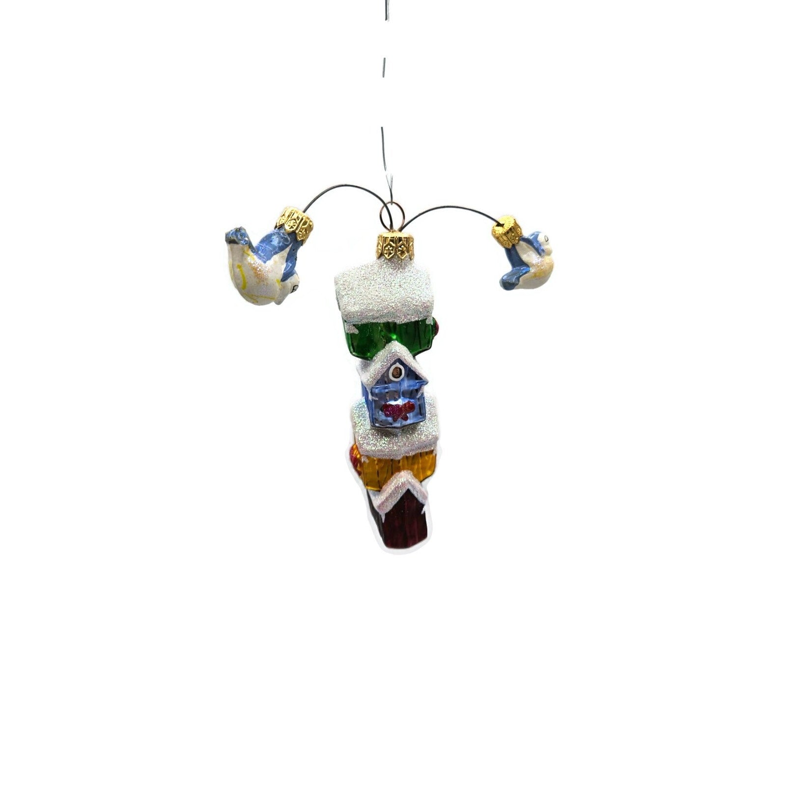 This ornament measure approximately 5.25 inches tall, 5 inches wide with the birds individually made and hand painted in Poland.