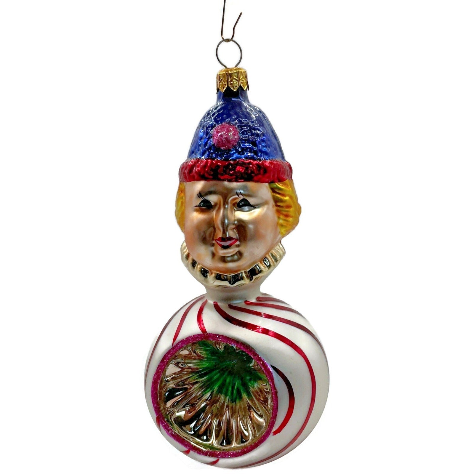 Christopher Radko Squiggles Stripe Reflector Clown Christmas Tree Decor Ornament