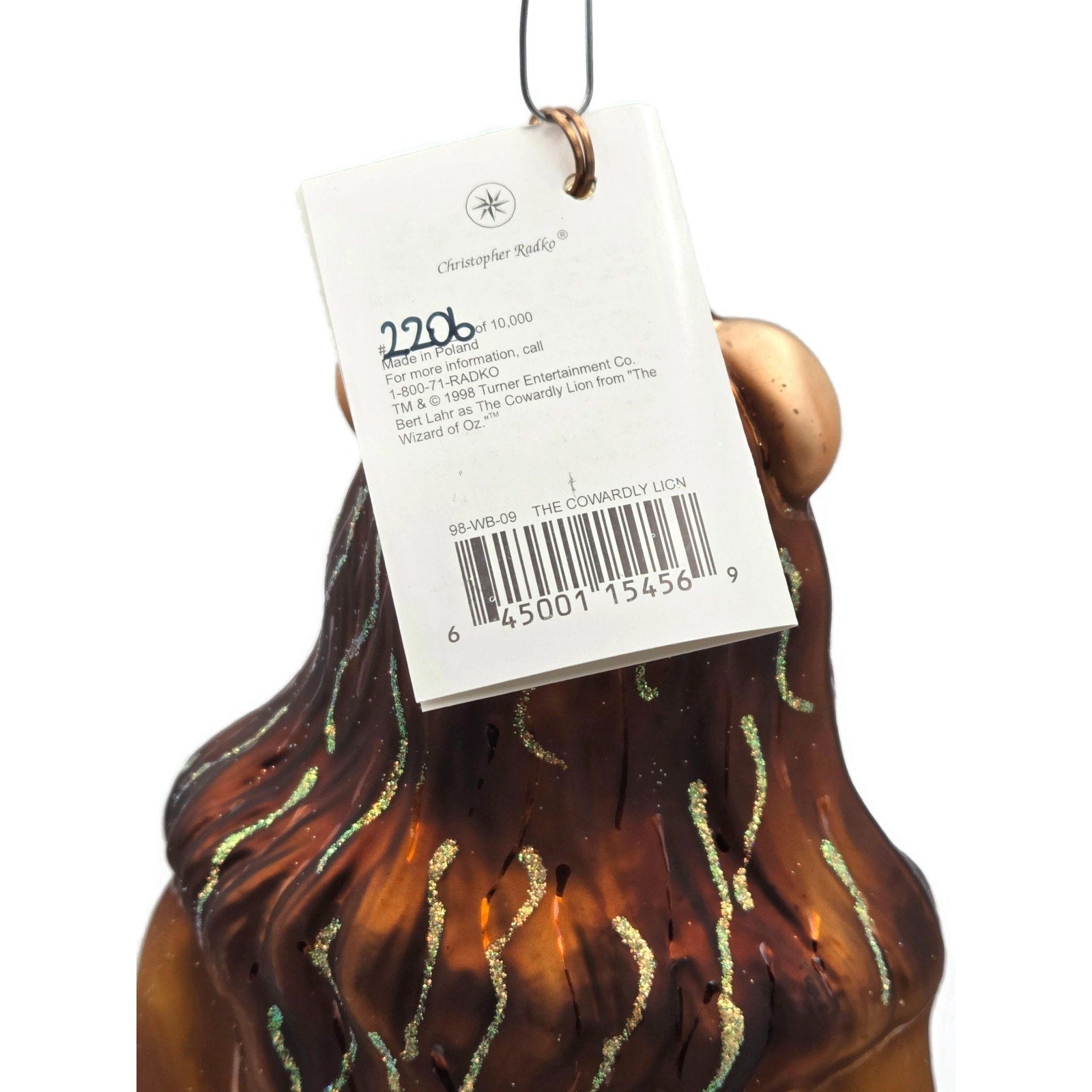 Christopher Radko The Cowardly Lion Wizard Of OZ Christmas Ornament 98-WB-09
