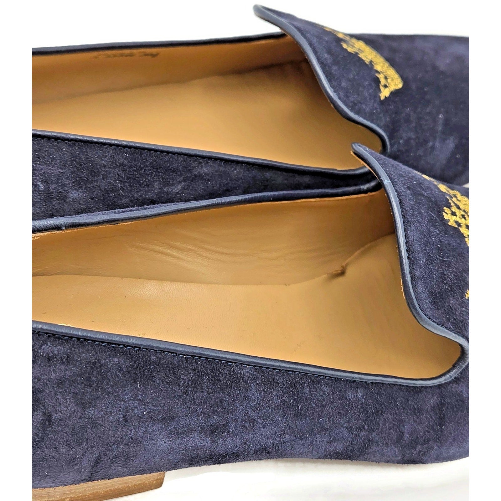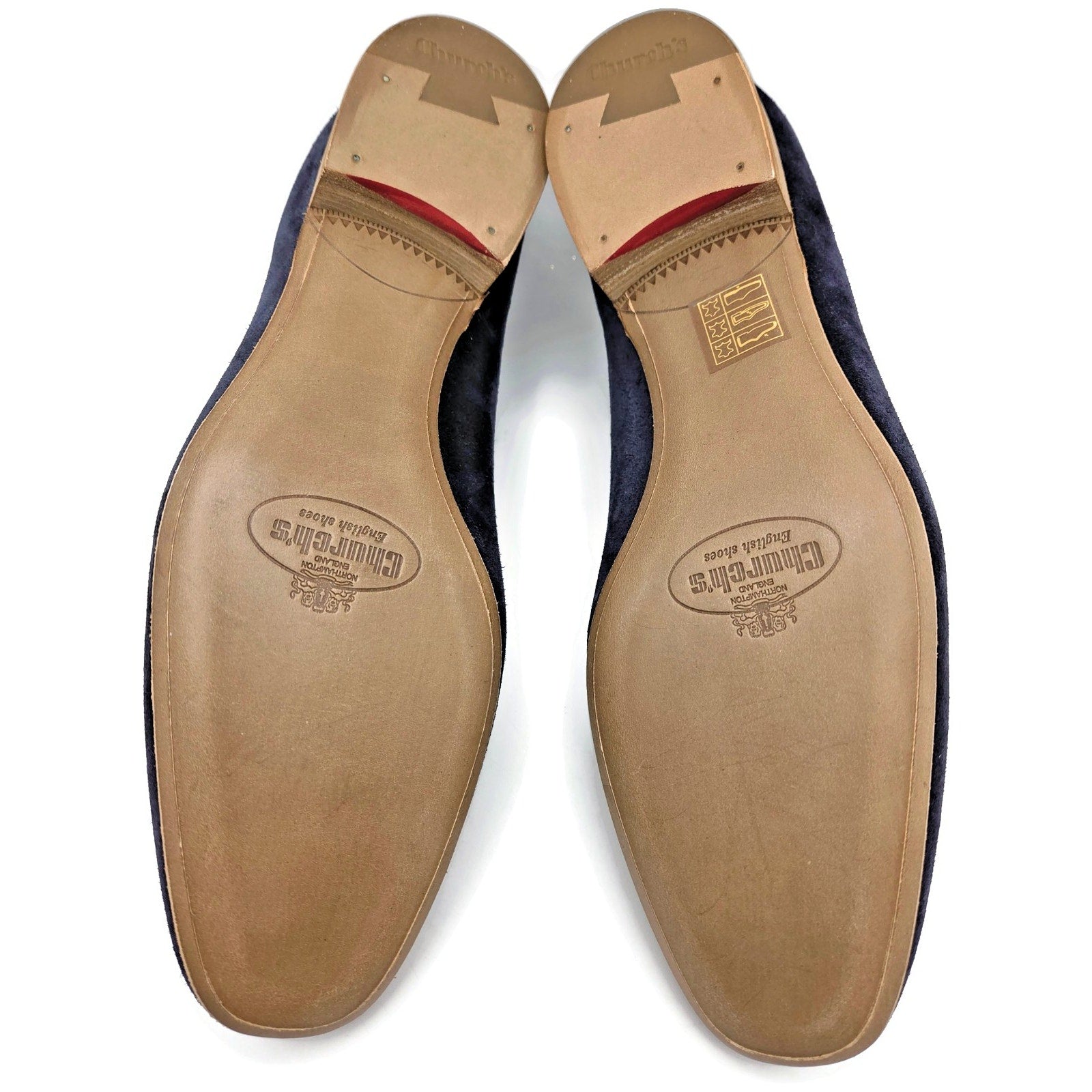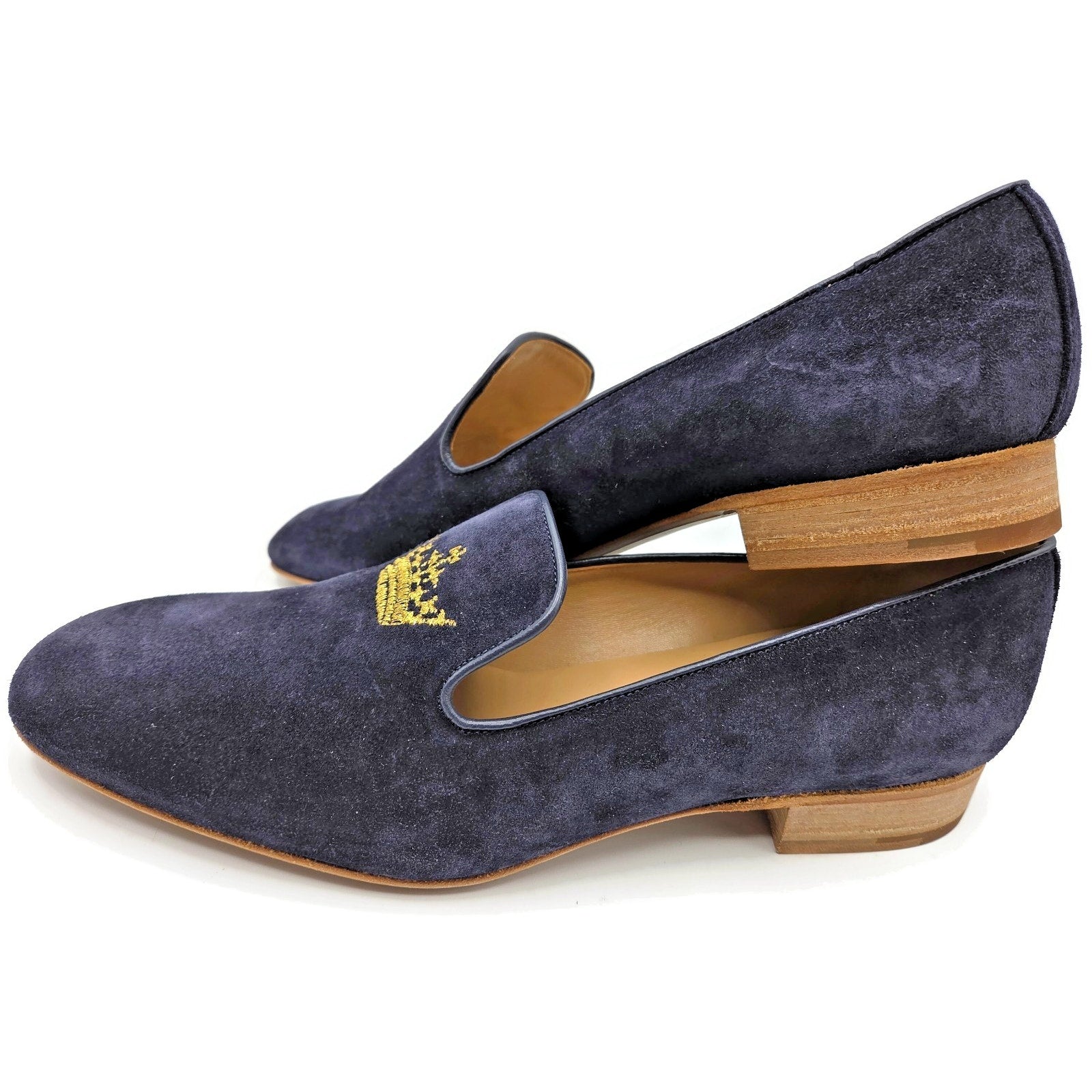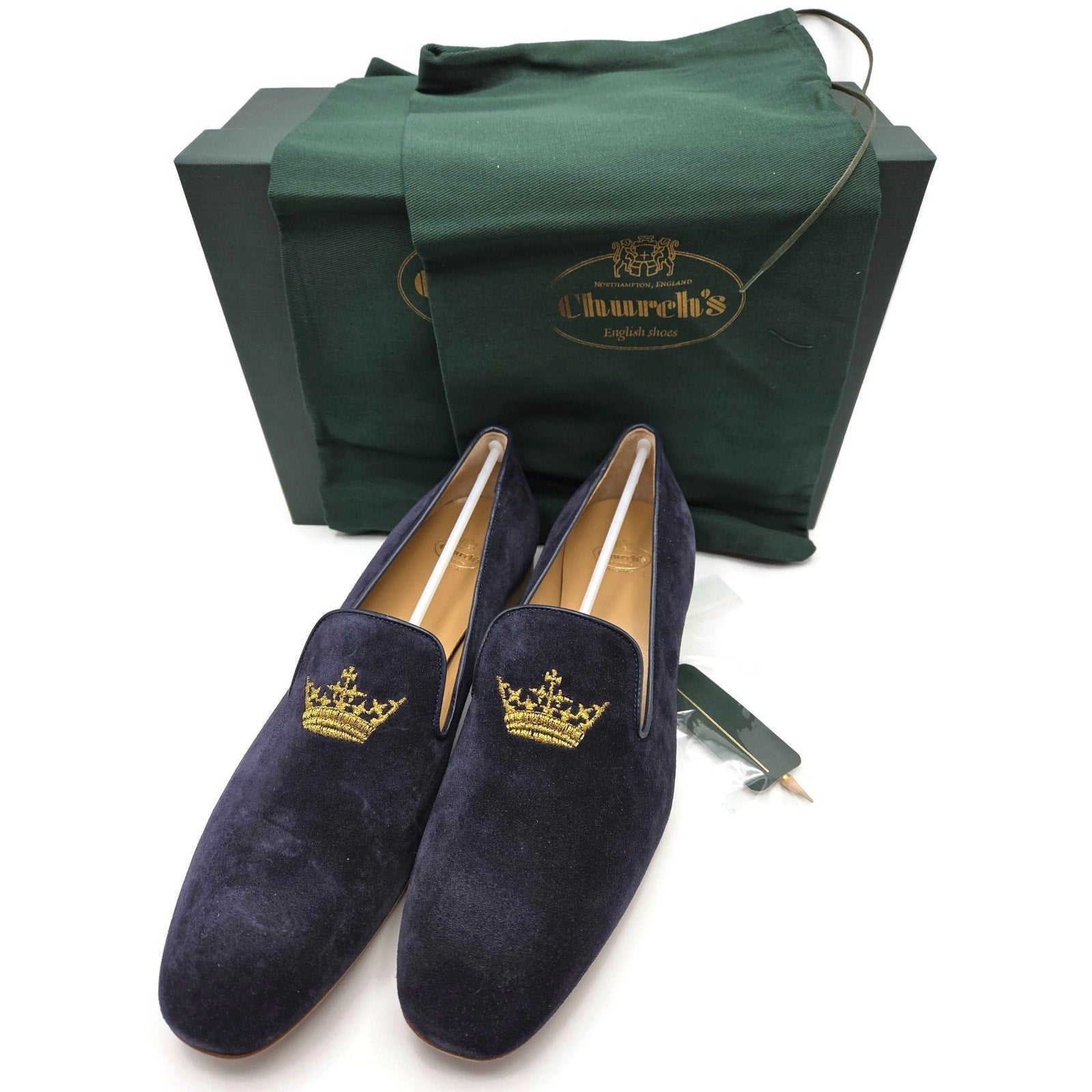 Churchs Flora 2 Dark Blue Suede Loafers Rare Crown Embroidered Luxury Shoes