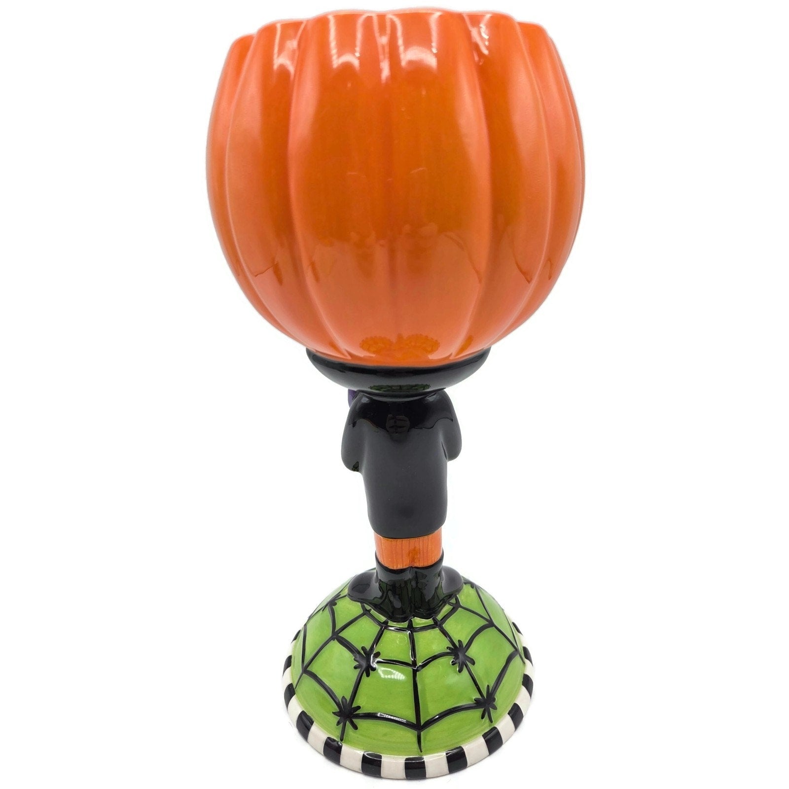 Department 56 Halloween Google Eye Pumpkin Head Goblet Ceramic Dish Spider Web