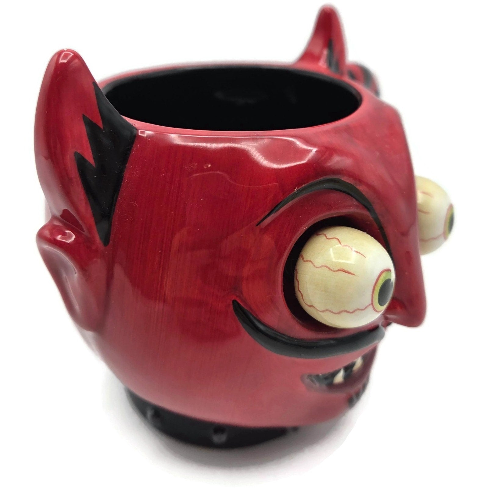 Dept 56 Googly Eye Devil Mug Red Black 3D Eyeballs Halloween Retired