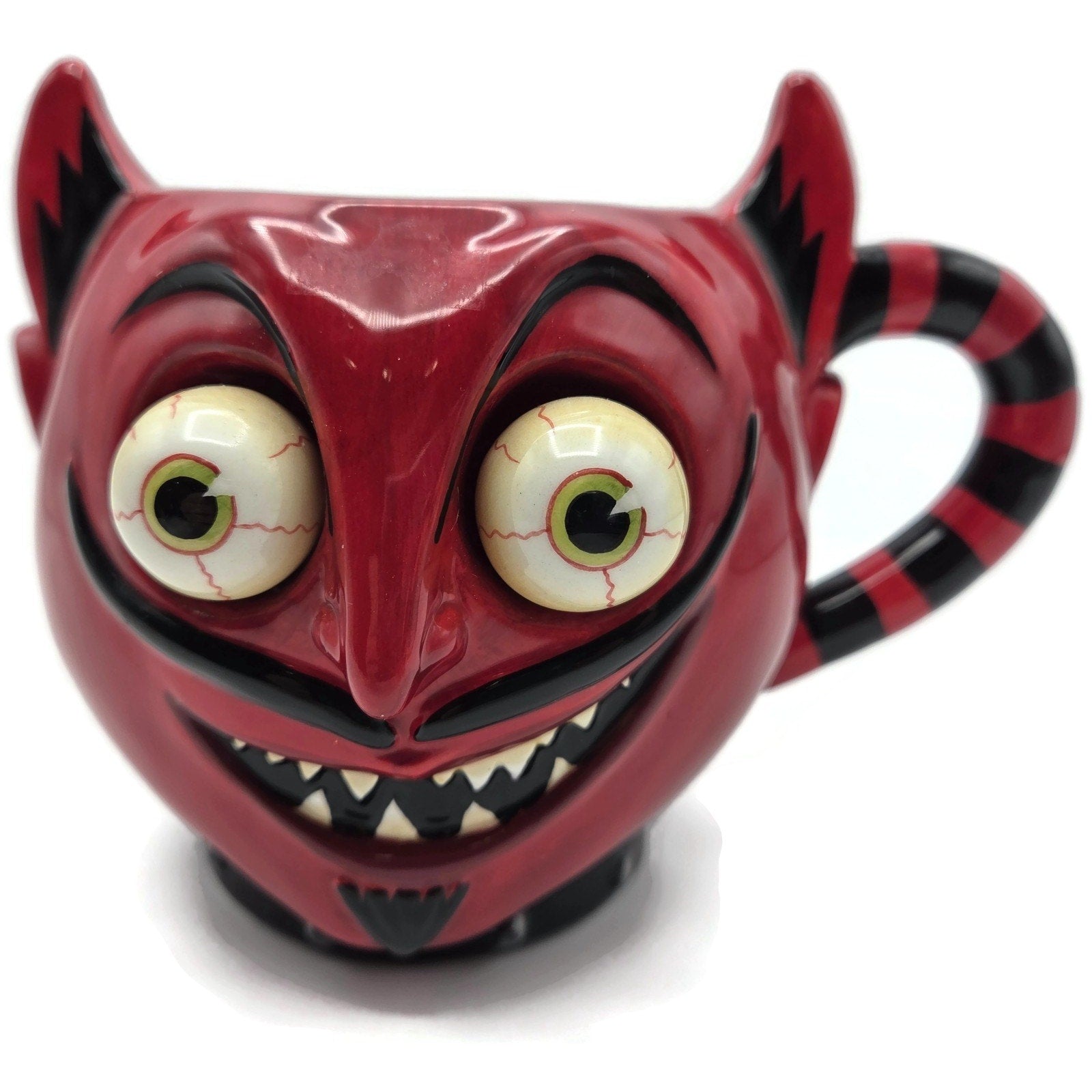 Dept 56 Googly Eye Devil Mug Coffee Cup Red Black 3D Eyeballs Halloween Retired