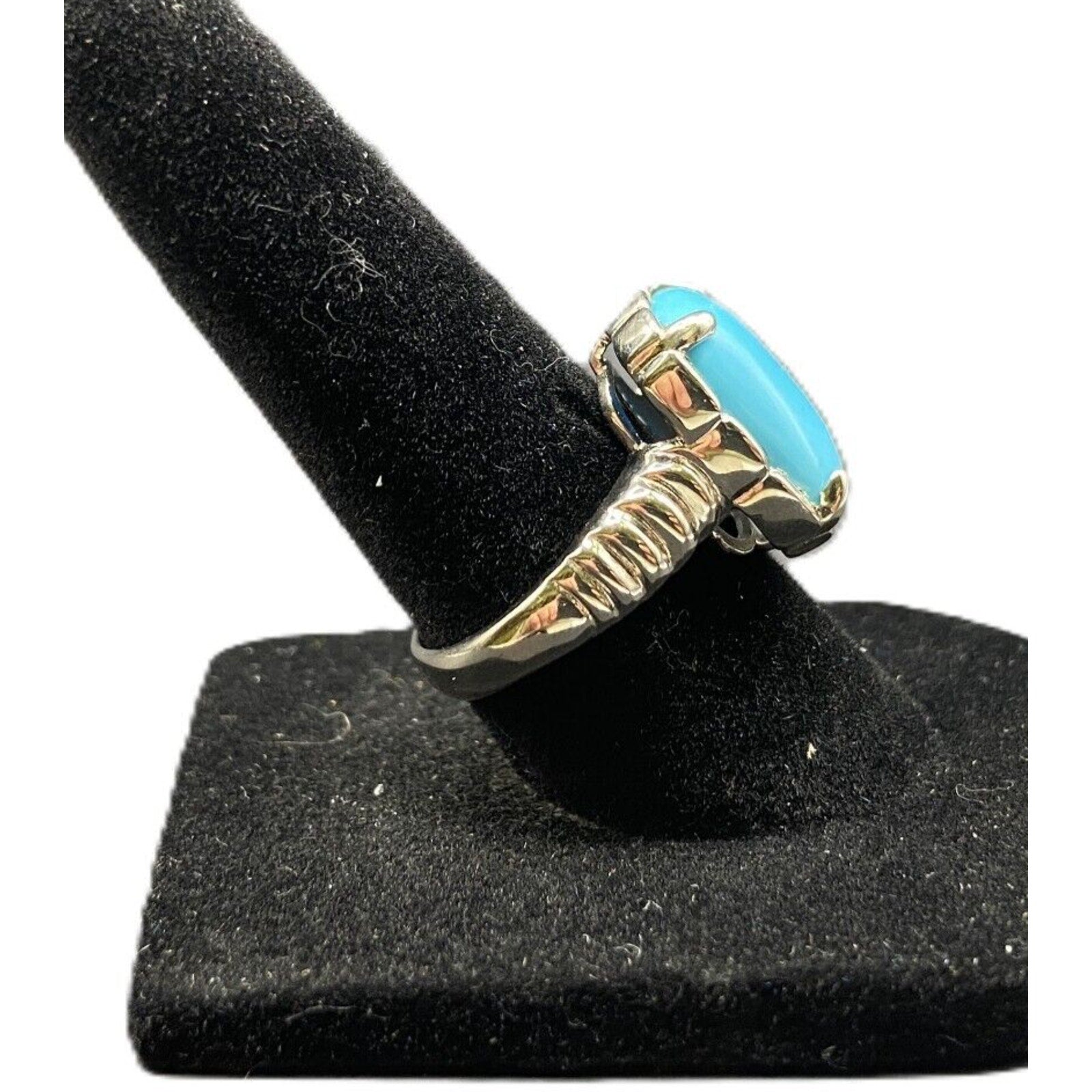 DK 925 Sterling Silver Ring Turquoise Blue Prong Set Semi-precious Stone Size 6