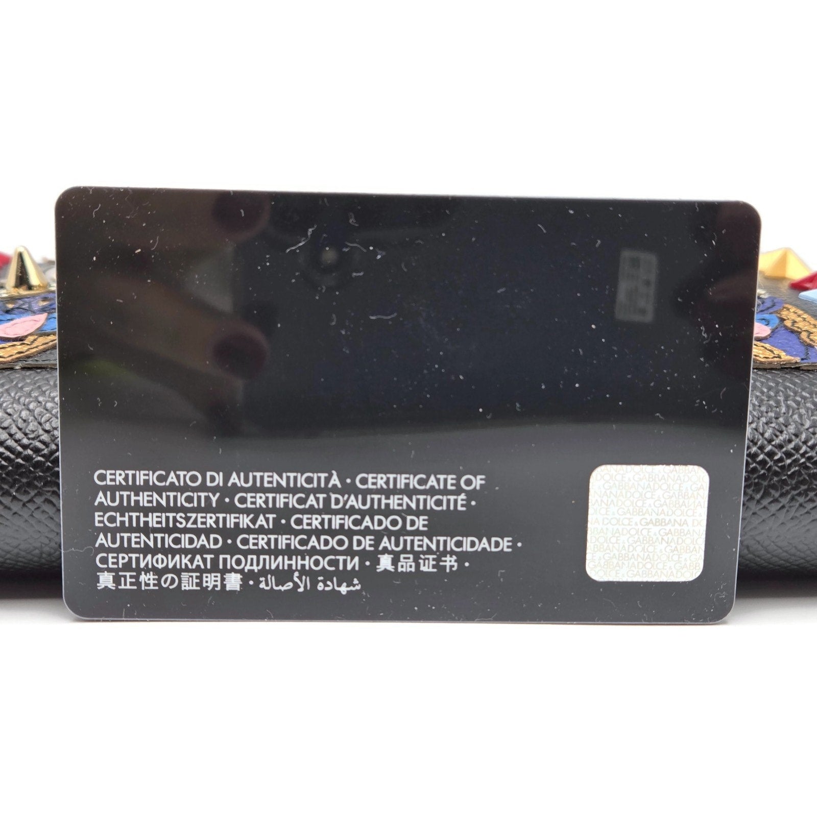 Dolce & Gabbana Black Leather Zip Around Wallet Stars Embroidered King Patches