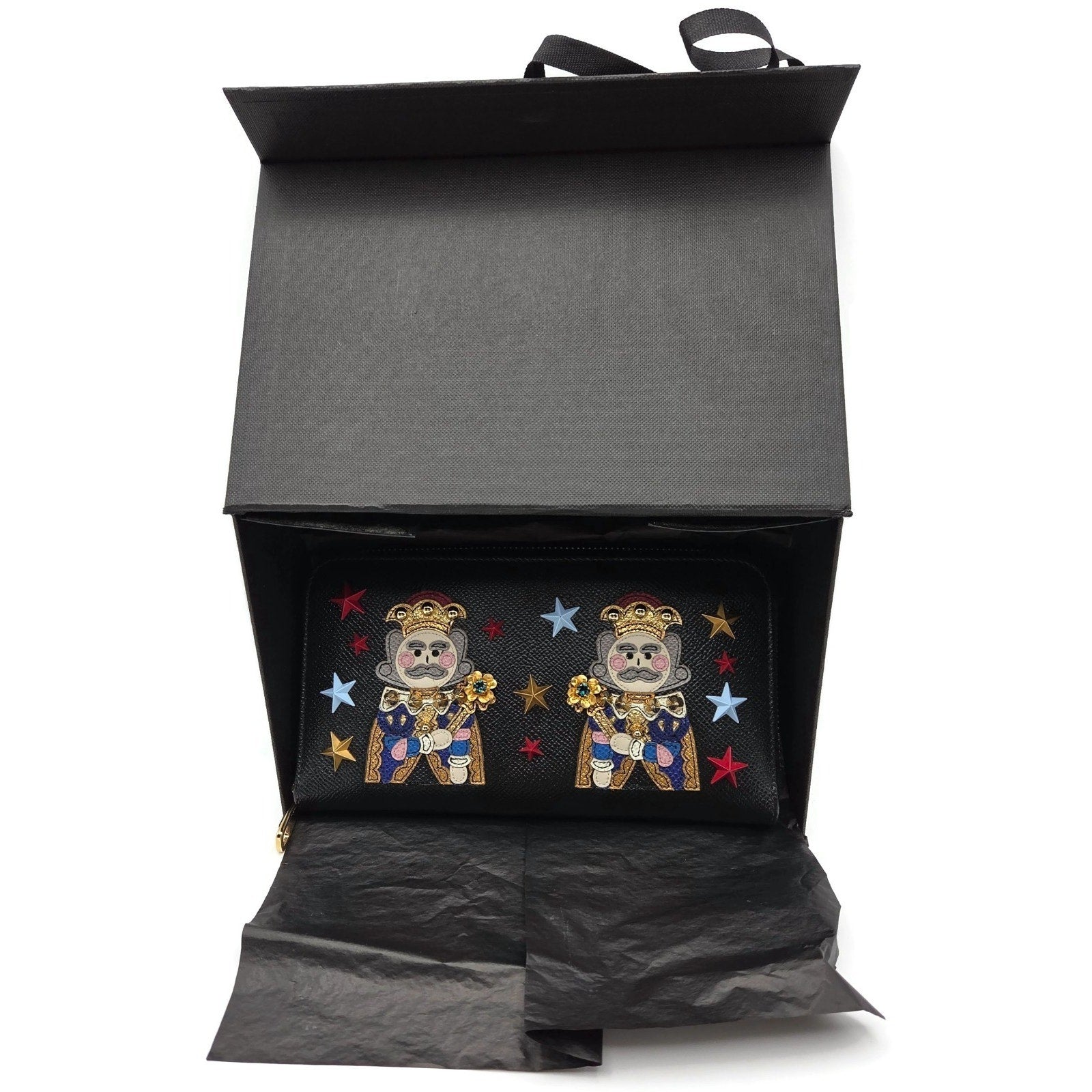 Dolce & Gabbana Black Leather Gold Zip Around Wallet Nutcracker King Stars Royal