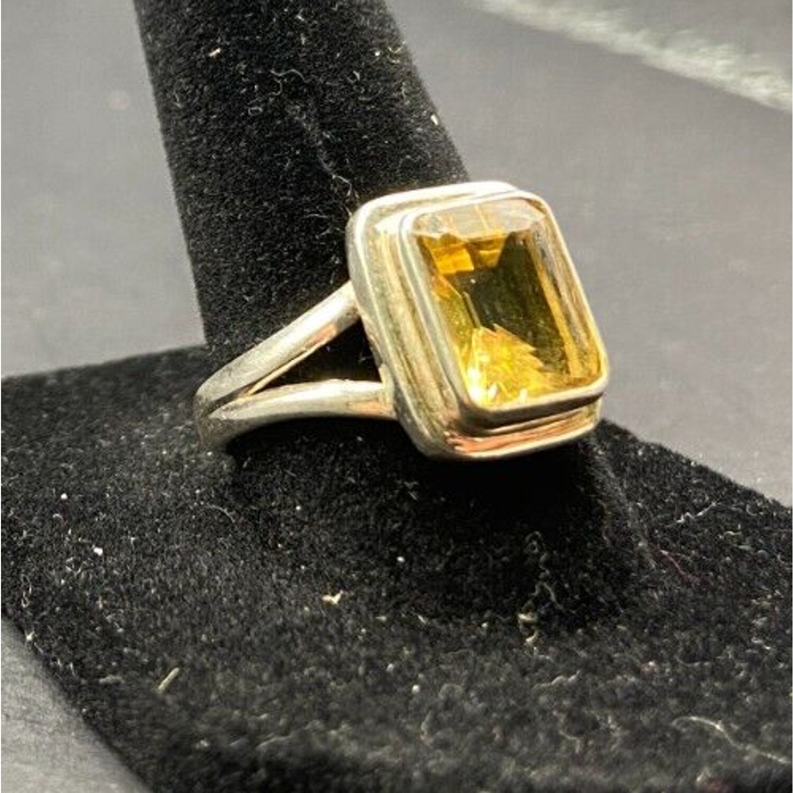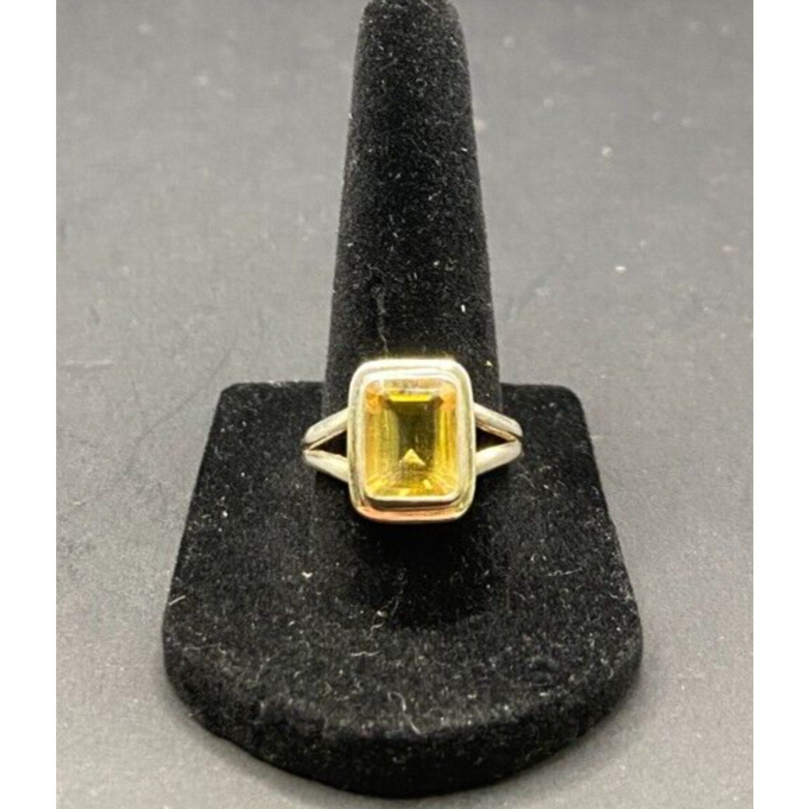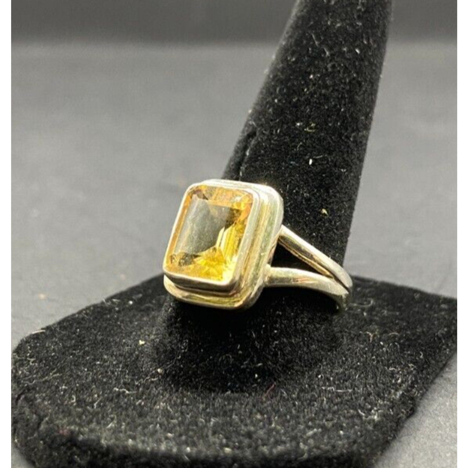 Emerald Cut Yellow Citrine Crystal Gemstone Ring 925 Sterling Silver Size 8.25