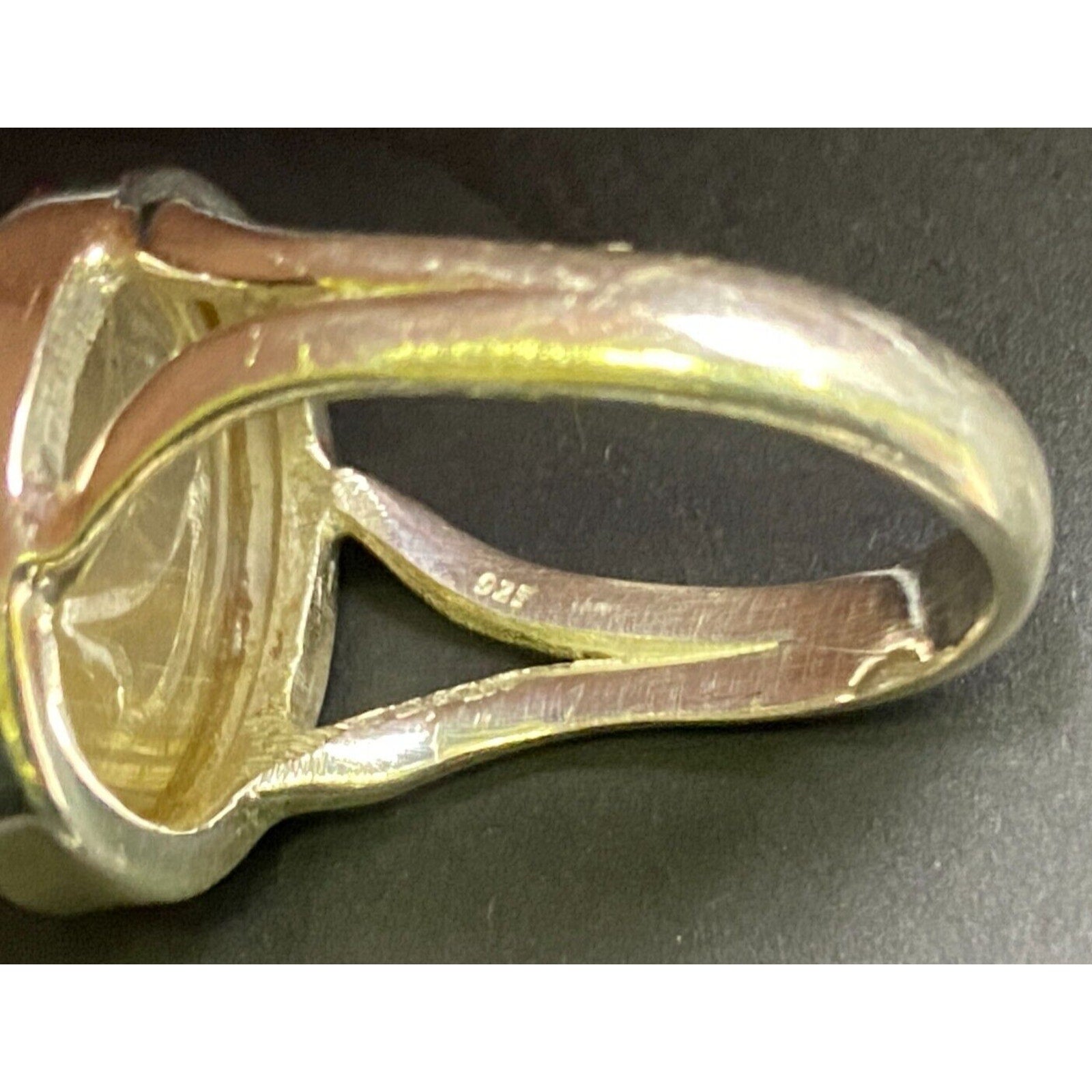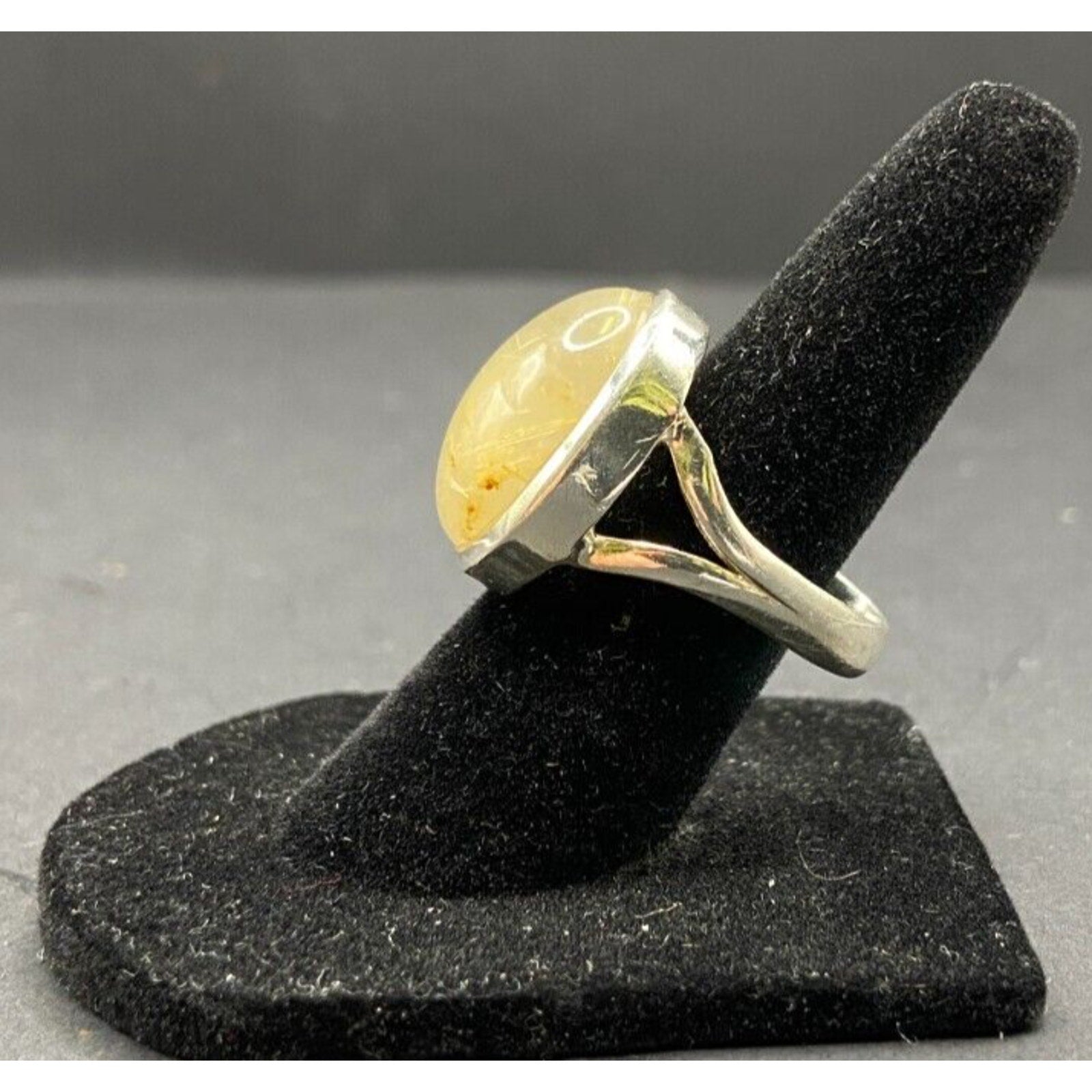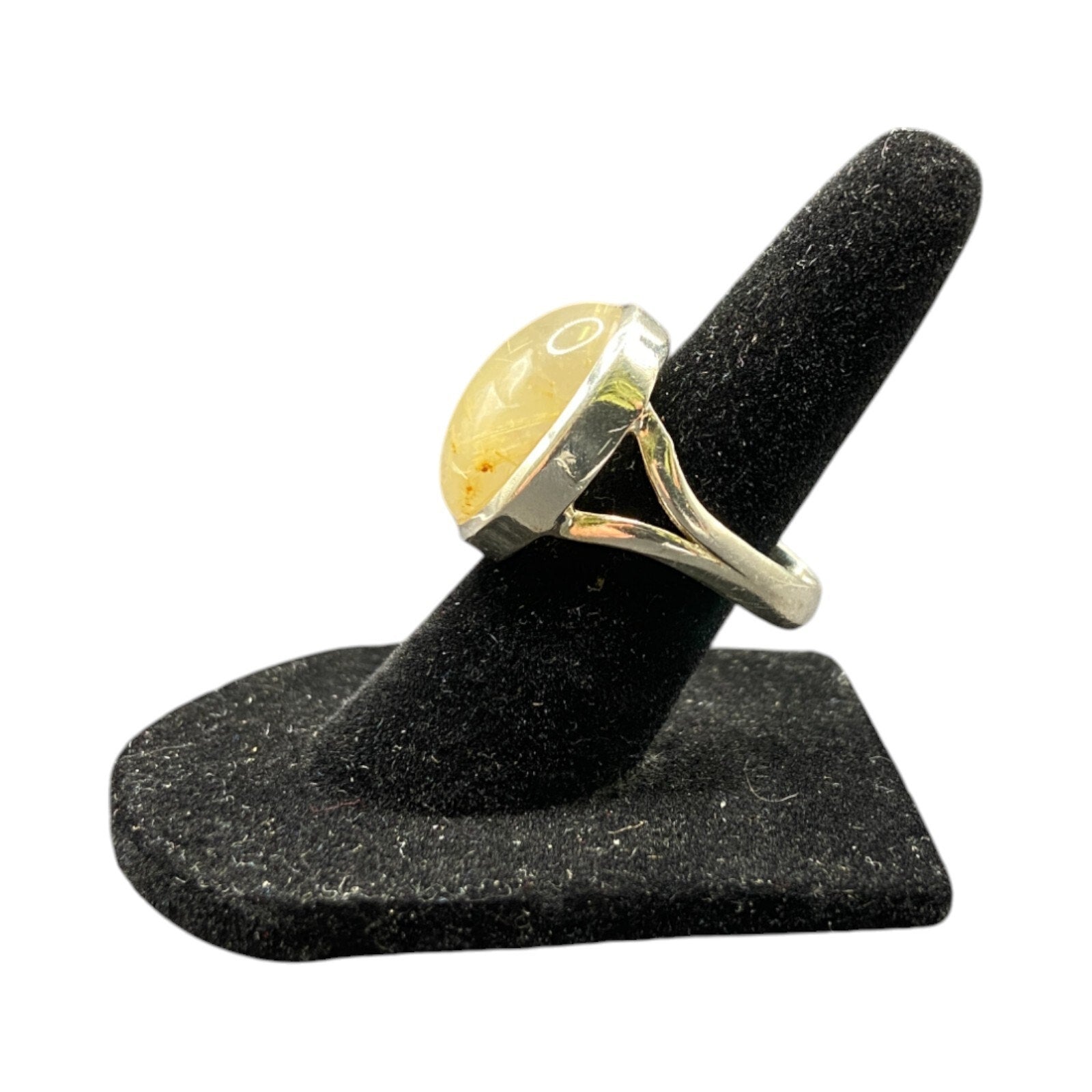 Golden Rutilated Quartz Crystal Ring Oval Cabochon Shaped 925 Sterling Silver Size 4