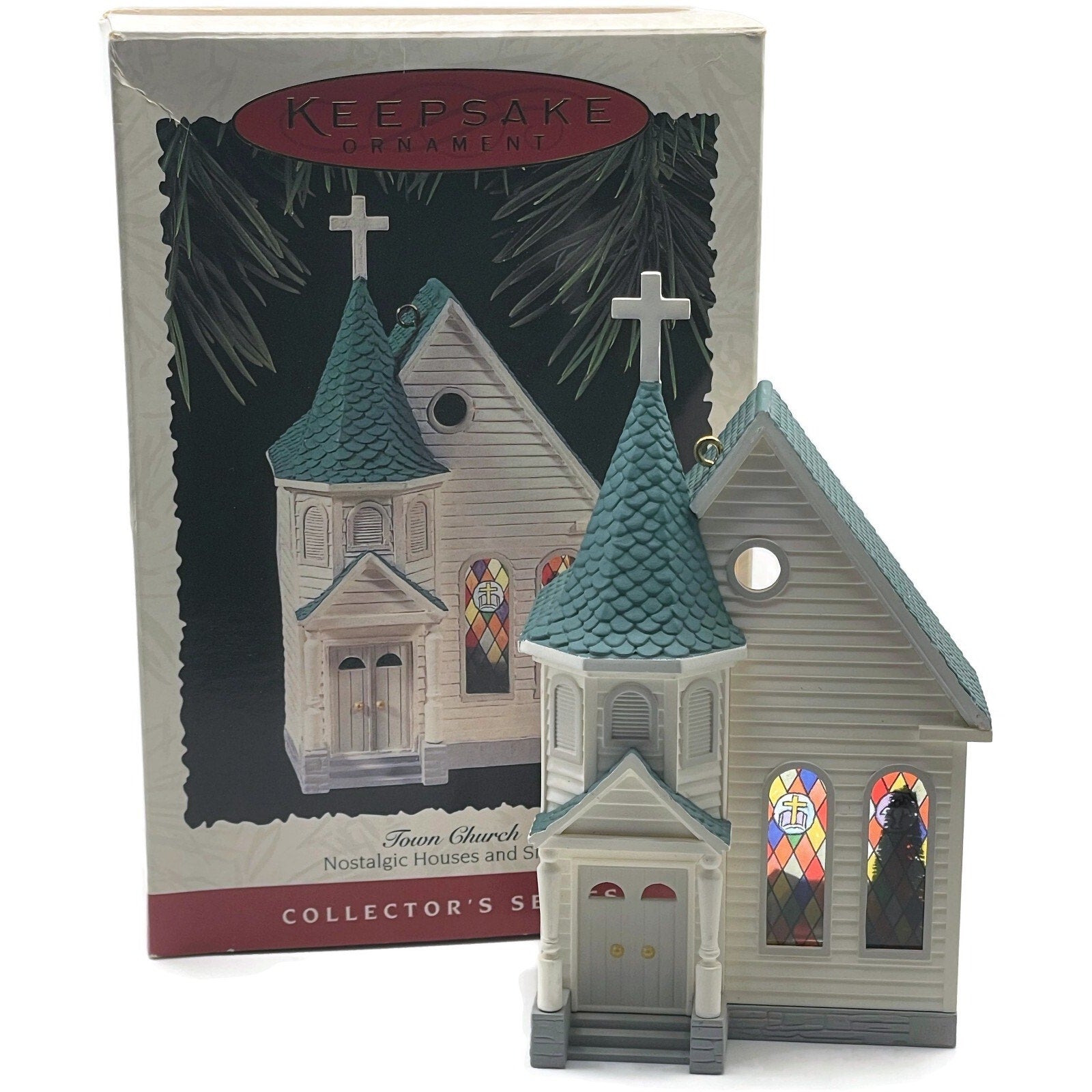 Ornament Hallmark Town Church 1995 Nostalgic Houses Shops Christmas Keepsake Decoration