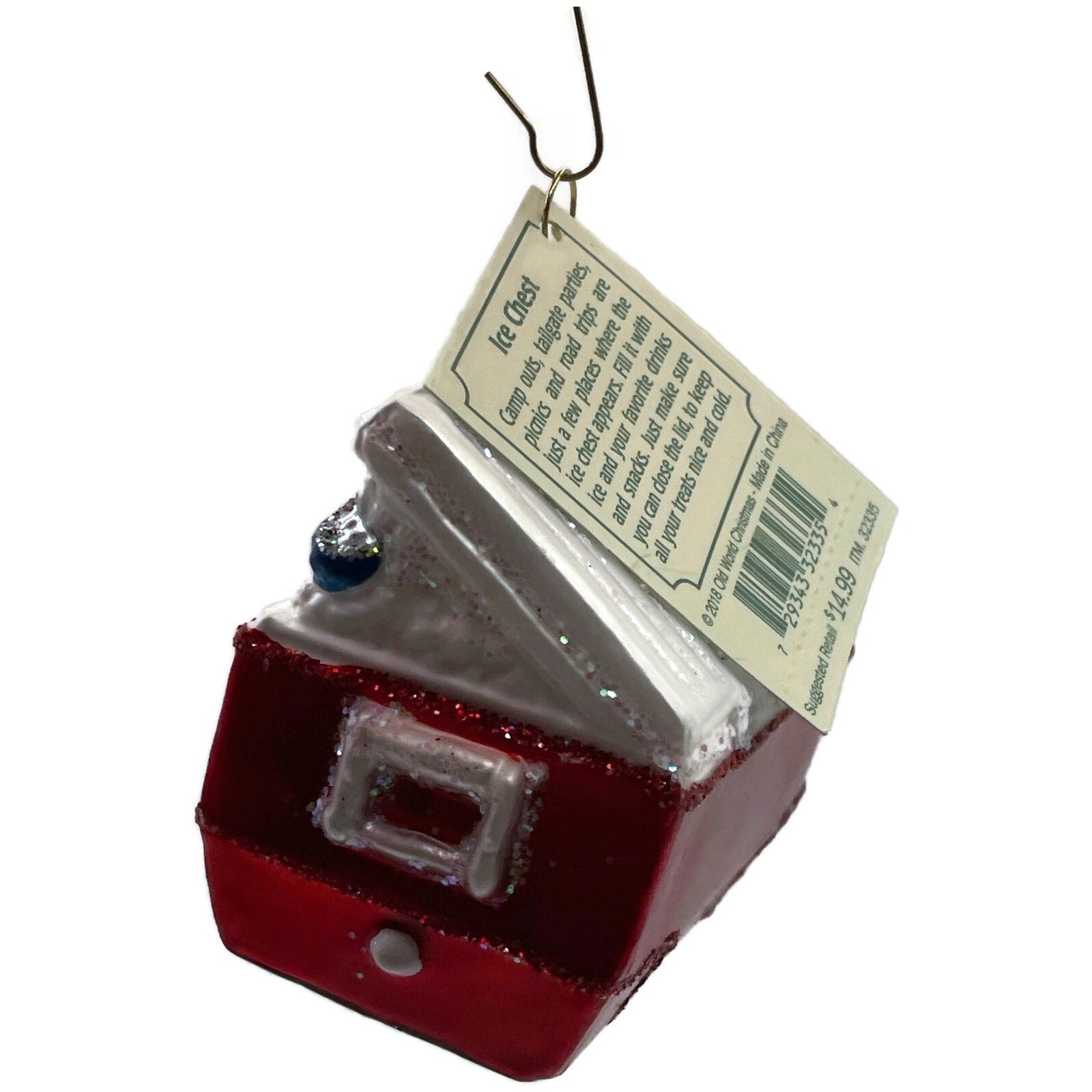 Ice Chest Ornament Glittered OWC Camping Blown Glass Old World Christmas Decor