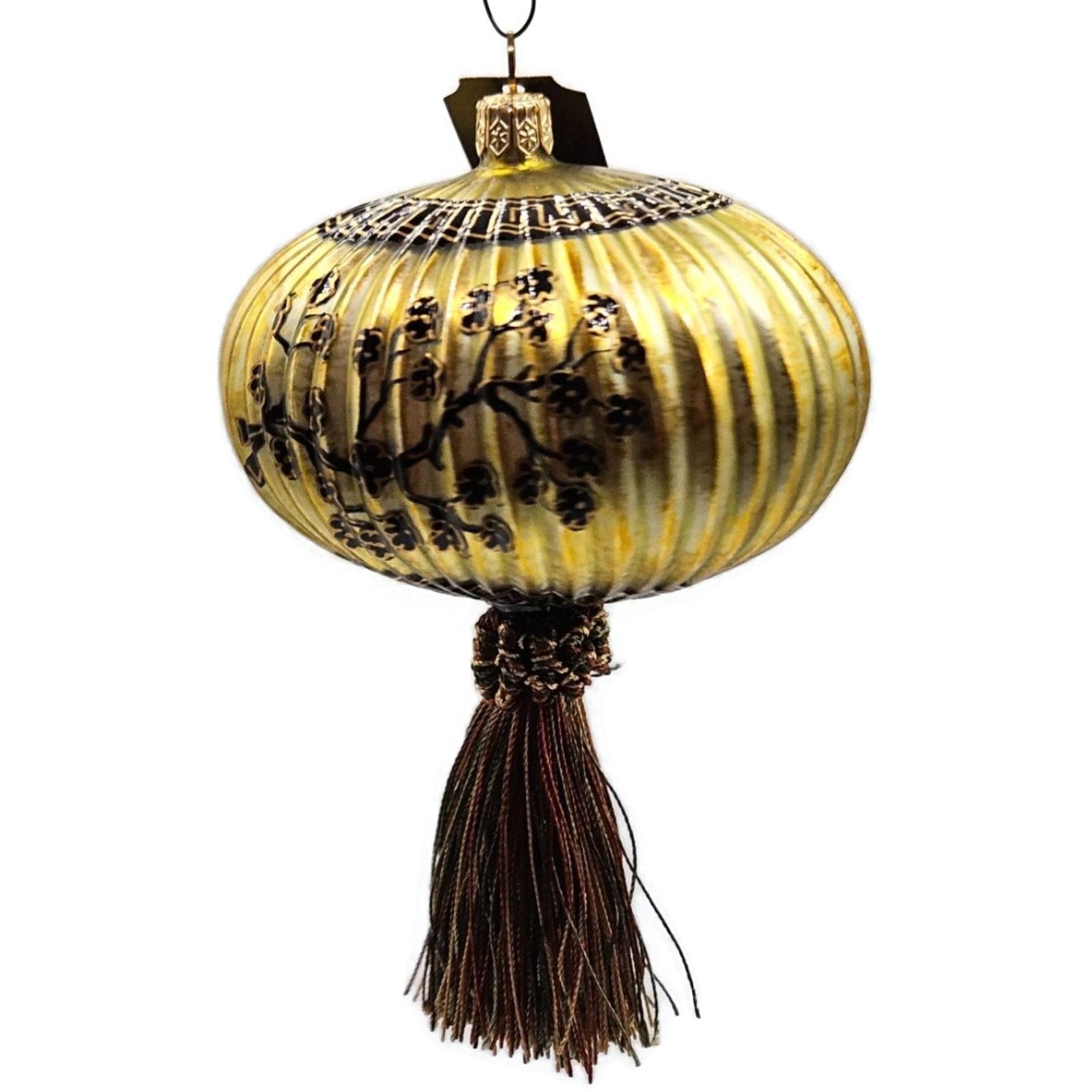 John Toole Oriental Lantern Gold Flowers Tasseled Christmas Tree Ornament