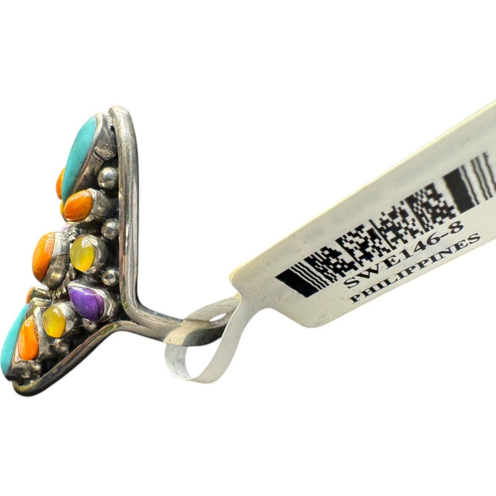 JTV Ring Turquoise Mother of Pearl Spiny Oyster Sterling Silver Ring Size 8 NEW
