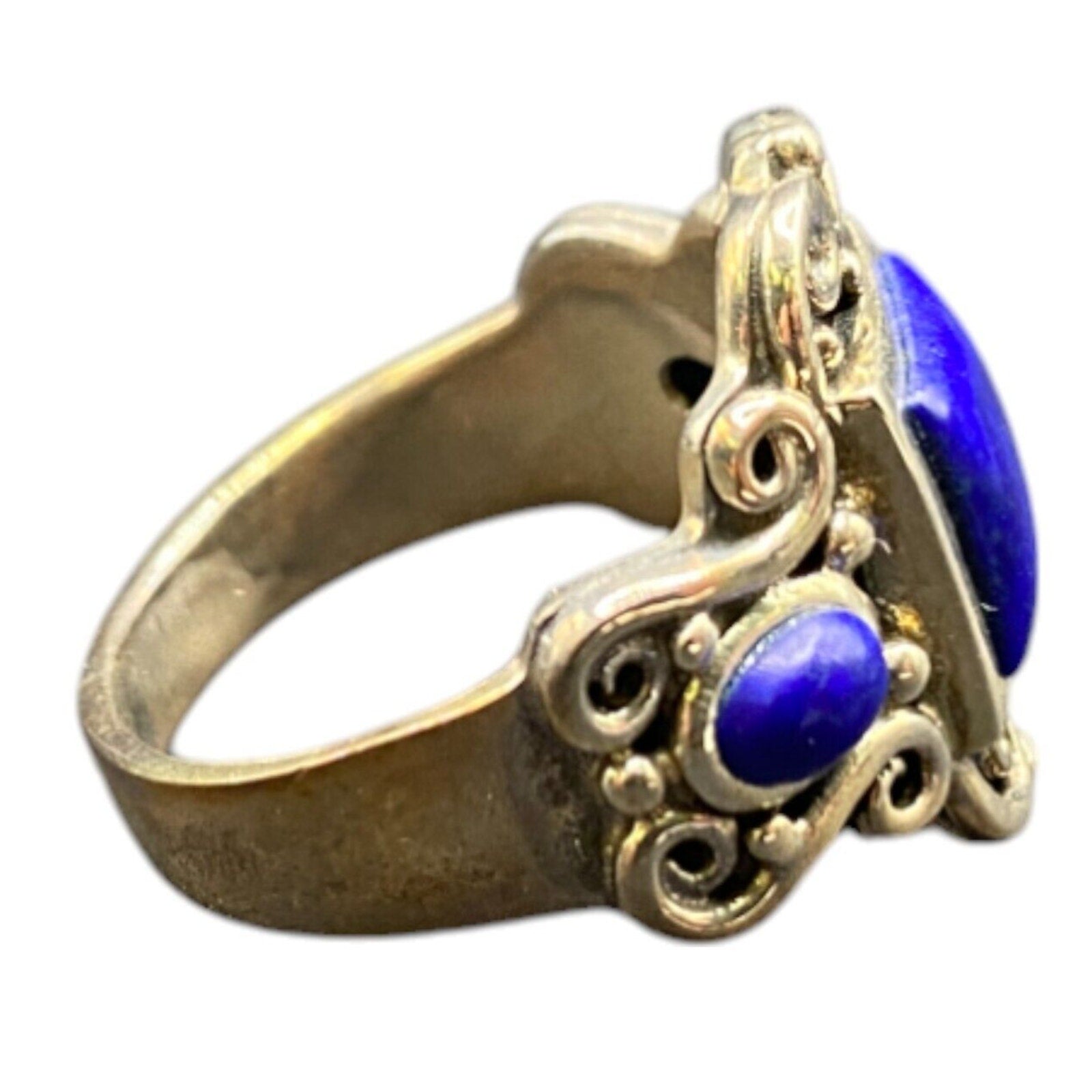 Lapis Lazuli Metamorphic Stone Ring 925 Sterling Silver Filigree NK Deep Blue 9