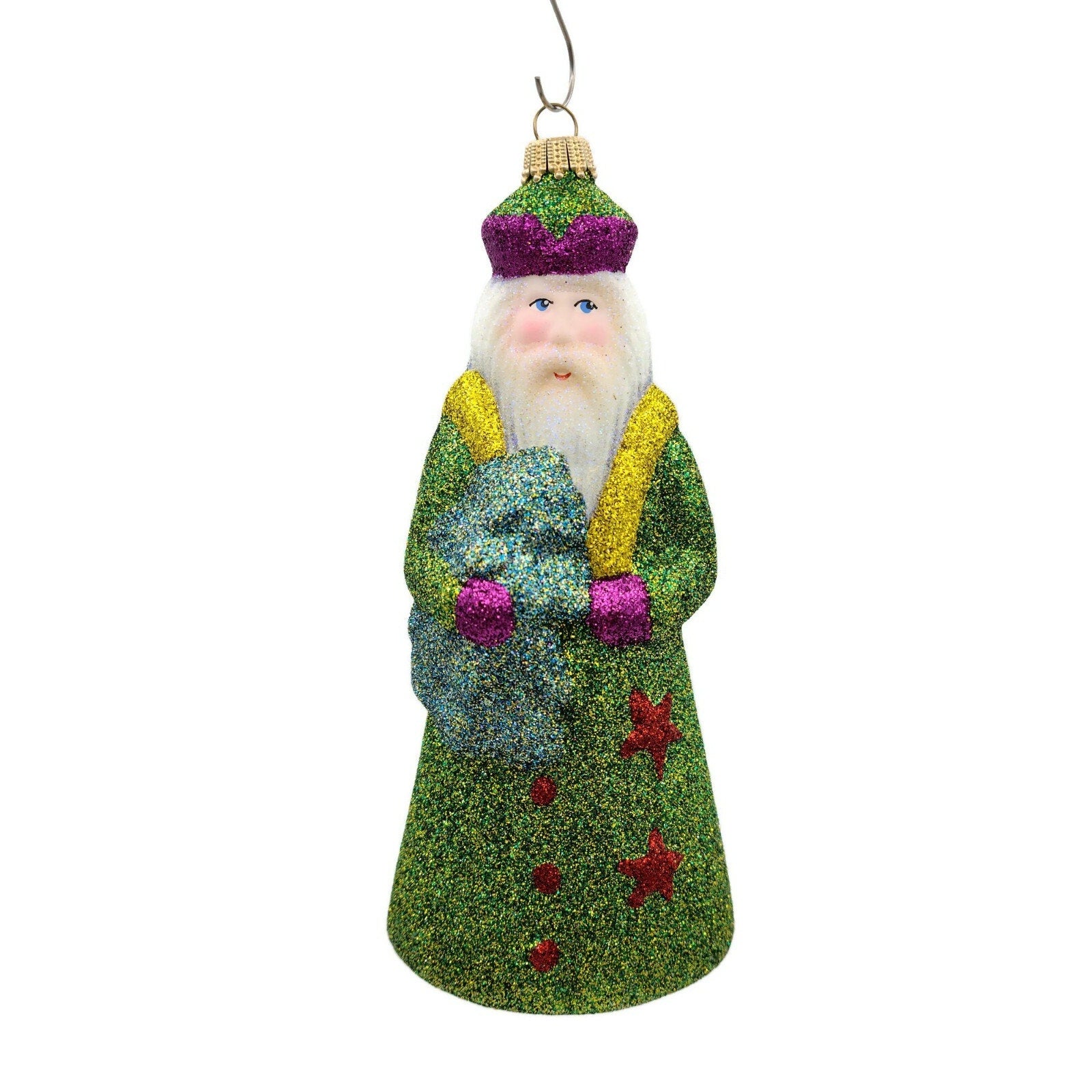 Larry Fraga Chartreuse Sparkler Santa Glitter Series Christmas Tree Ornament