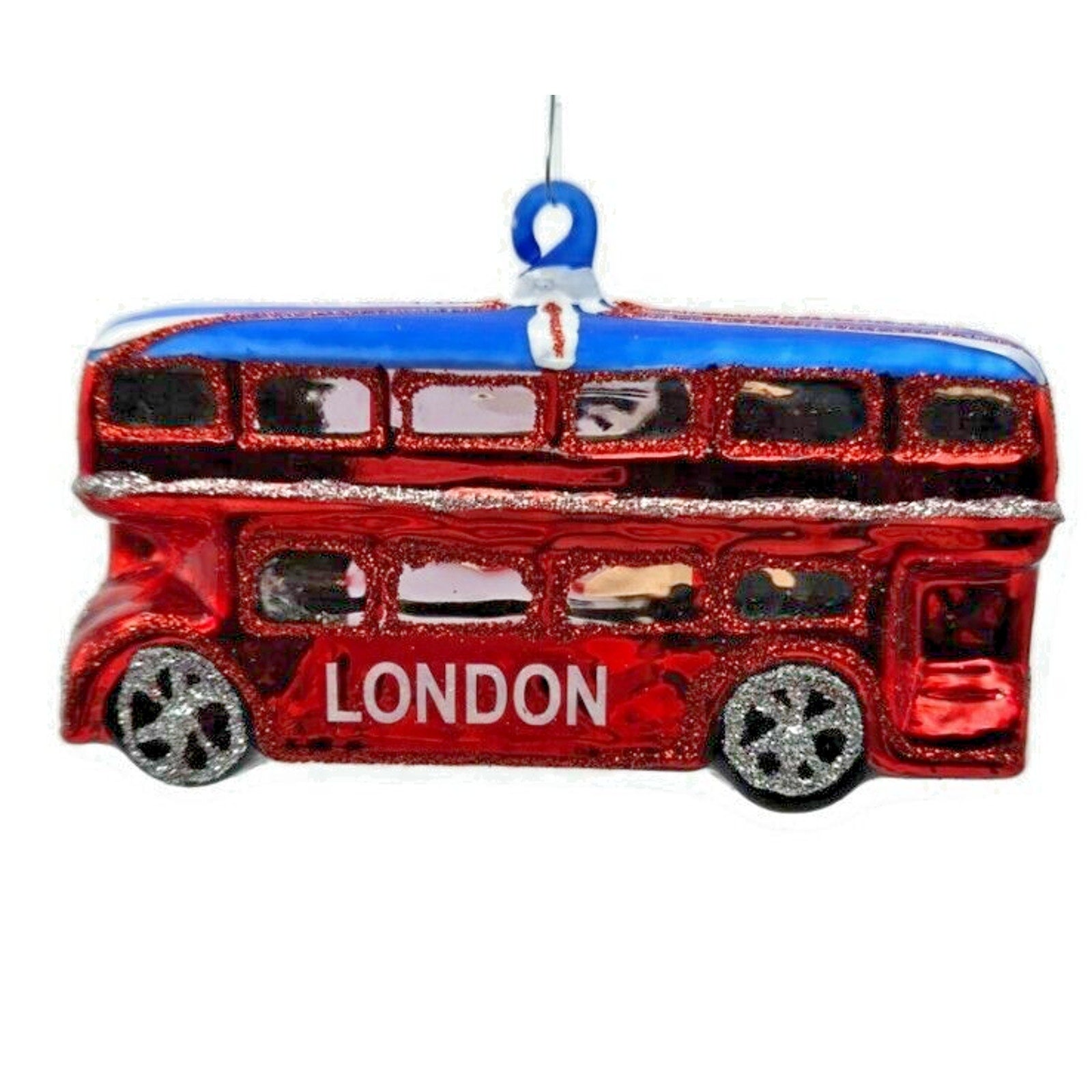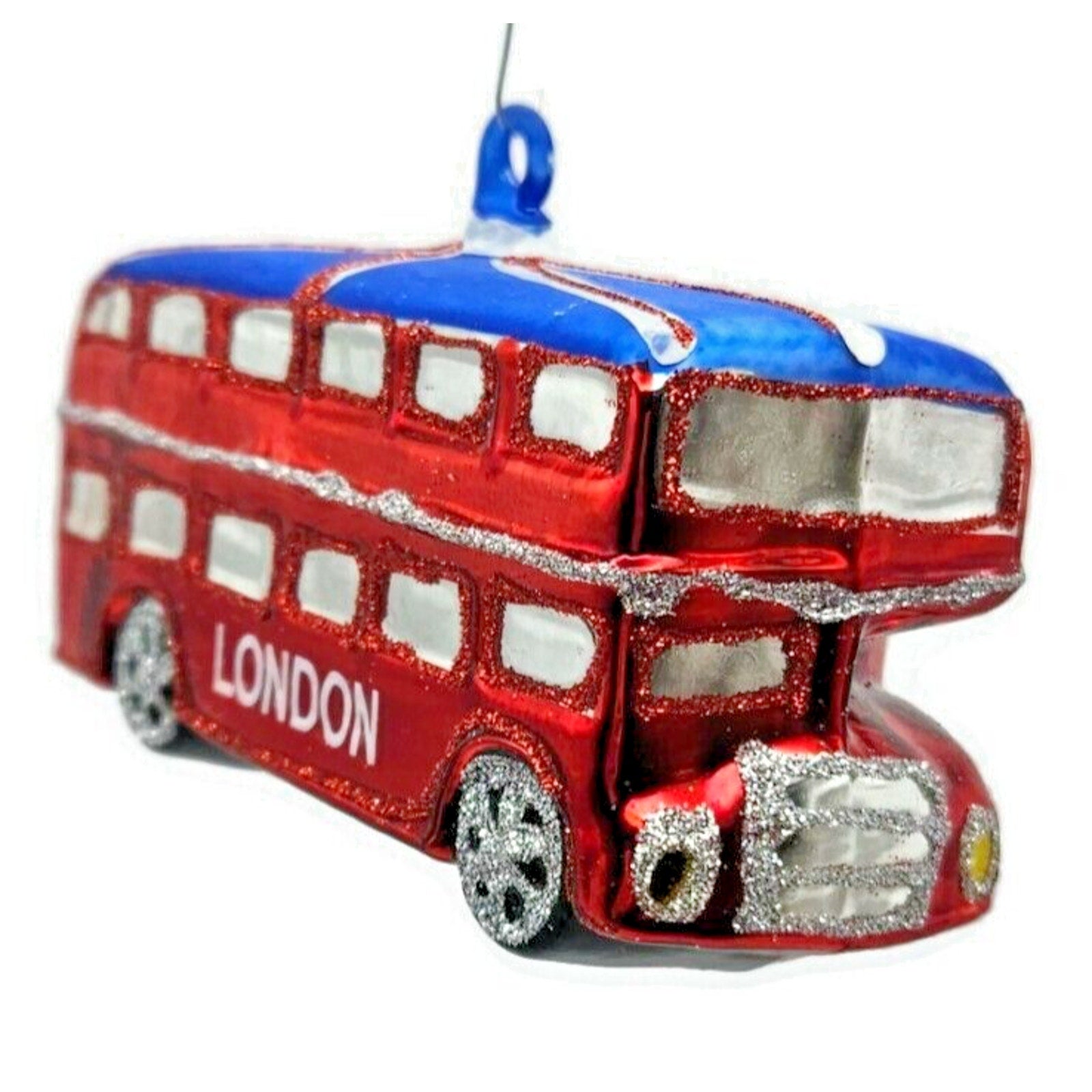 London England Double Decker Red Bus Glass Christmas Holiday Tree Ornament