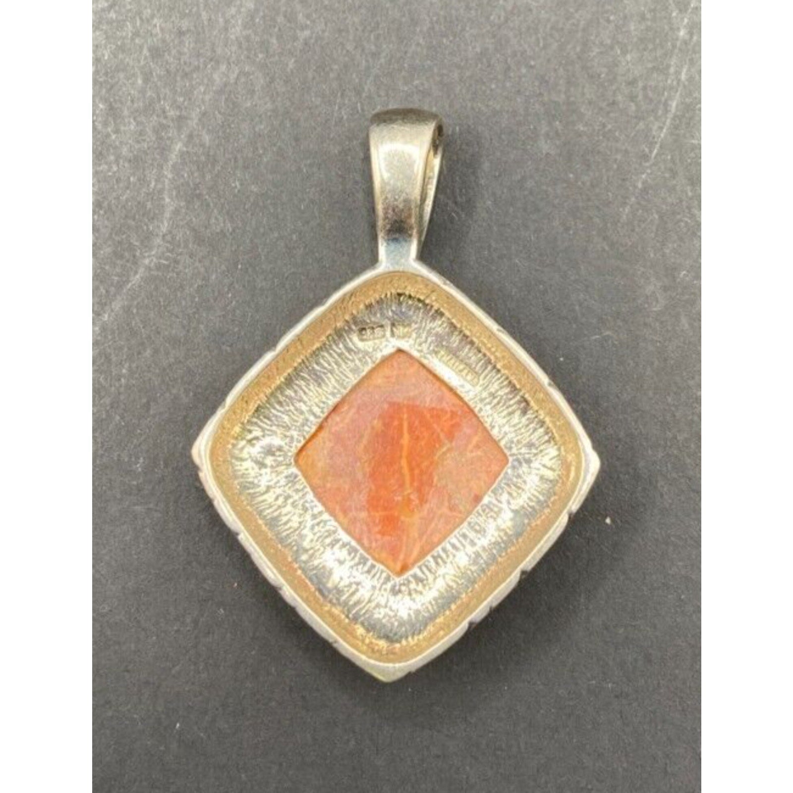Natural Spiny Oyster Pendant Orange Polished Shell Sterling Silver Diamond Shape