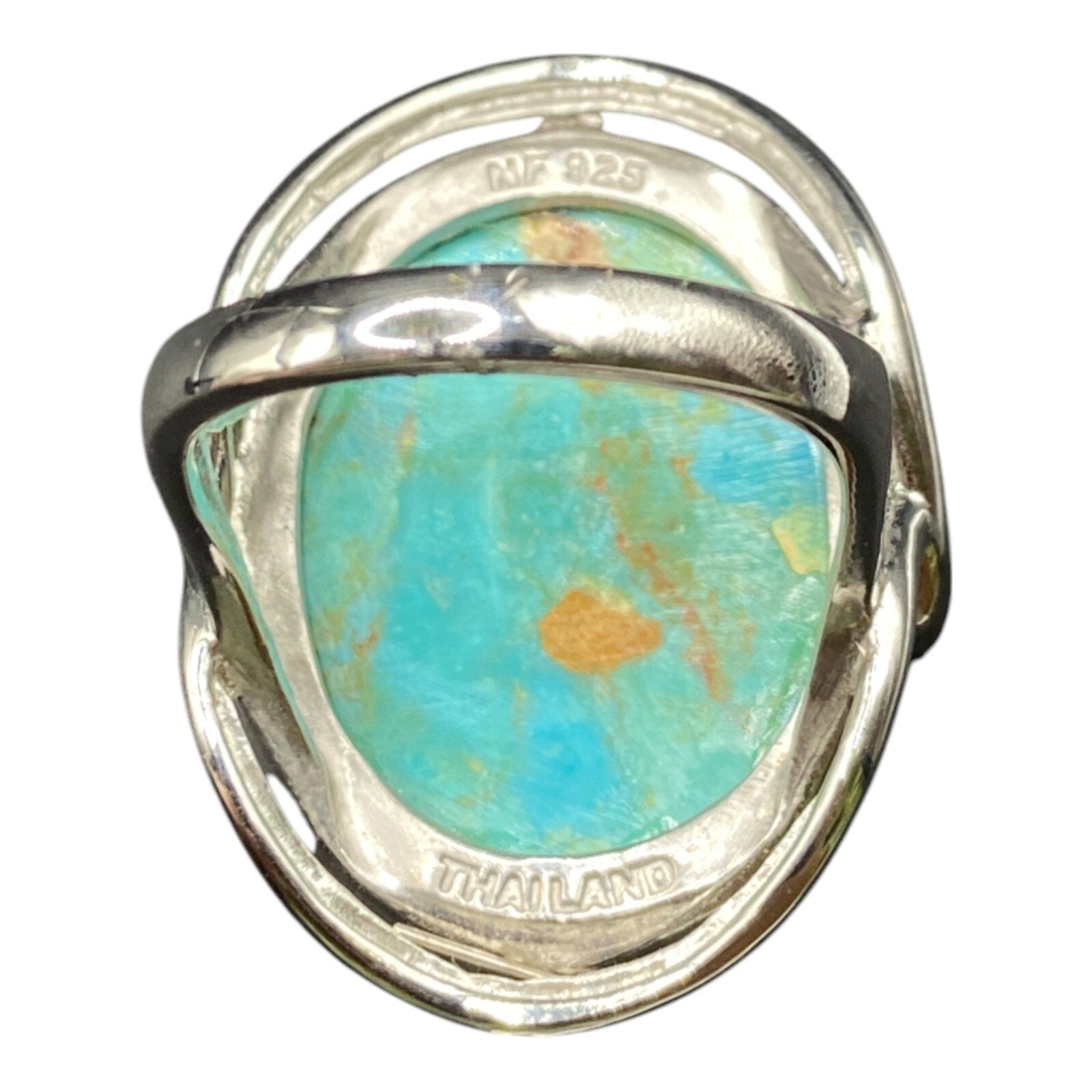 Ring NF 925 Sterling Silver Thailand Oval Cabochon Turquoise Gemstone Size 9