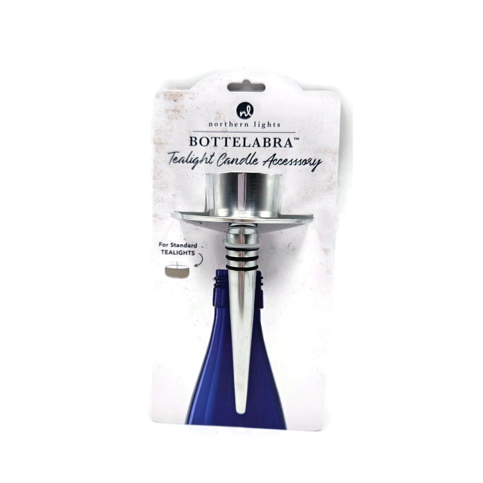 Northern Lights Bottelabra Silver Wine Bottle Tealight Candle Holder NEW