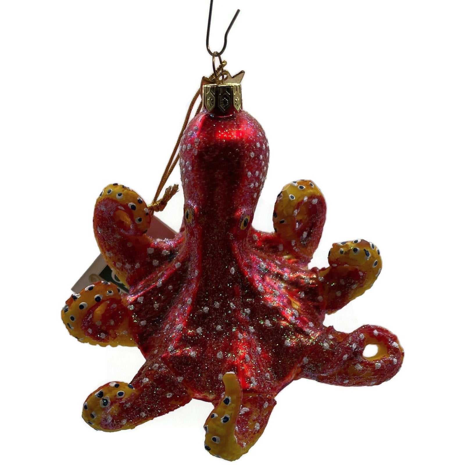 Bring a splash of the sea to your holiday décor with this Kurt Adler Noble Gems Red Glass Octopus Ornament. Handcrafted in glass and accented with nautical charm, this whimsical octopus is finished in a brilliant red hue that sparkles under the lights of your Christmas tree.
