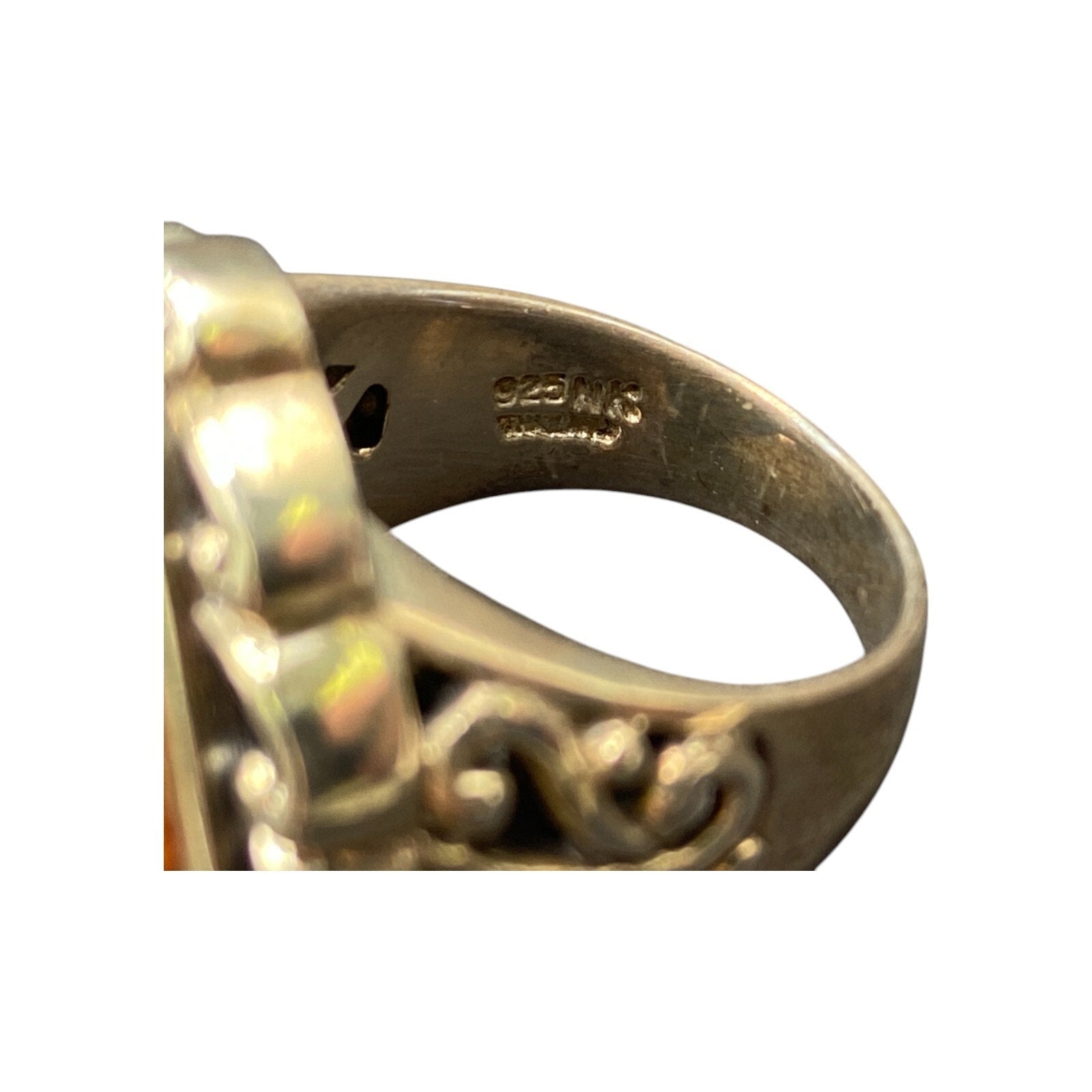 925 Sterling Silver Cocktail Ring Orange Jasper Gemstone NK Thailand Size 8