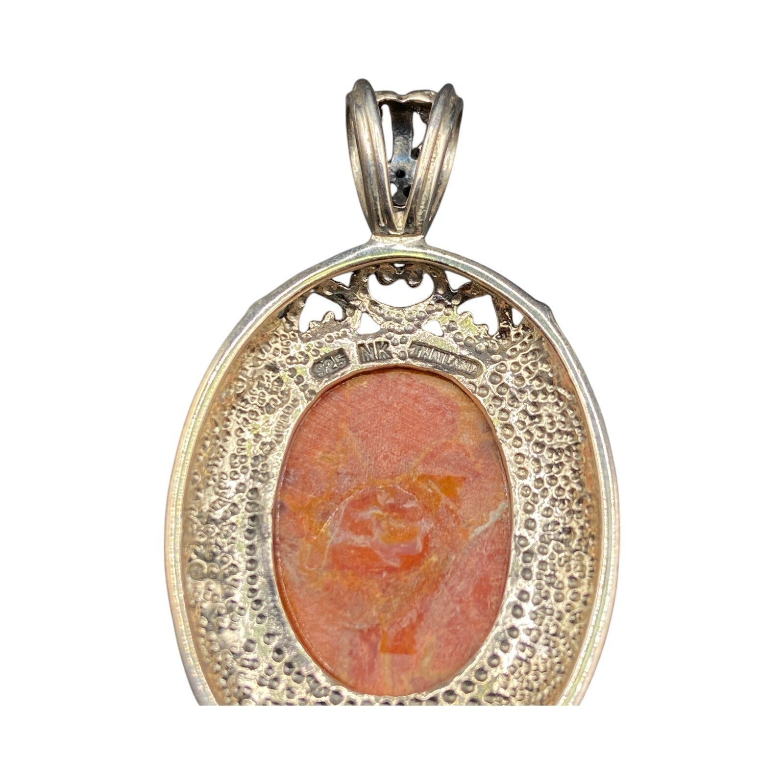Orange Spiny Oyster Shell Oval Shaped Pendant 925 Sterling Silver NK Thailand