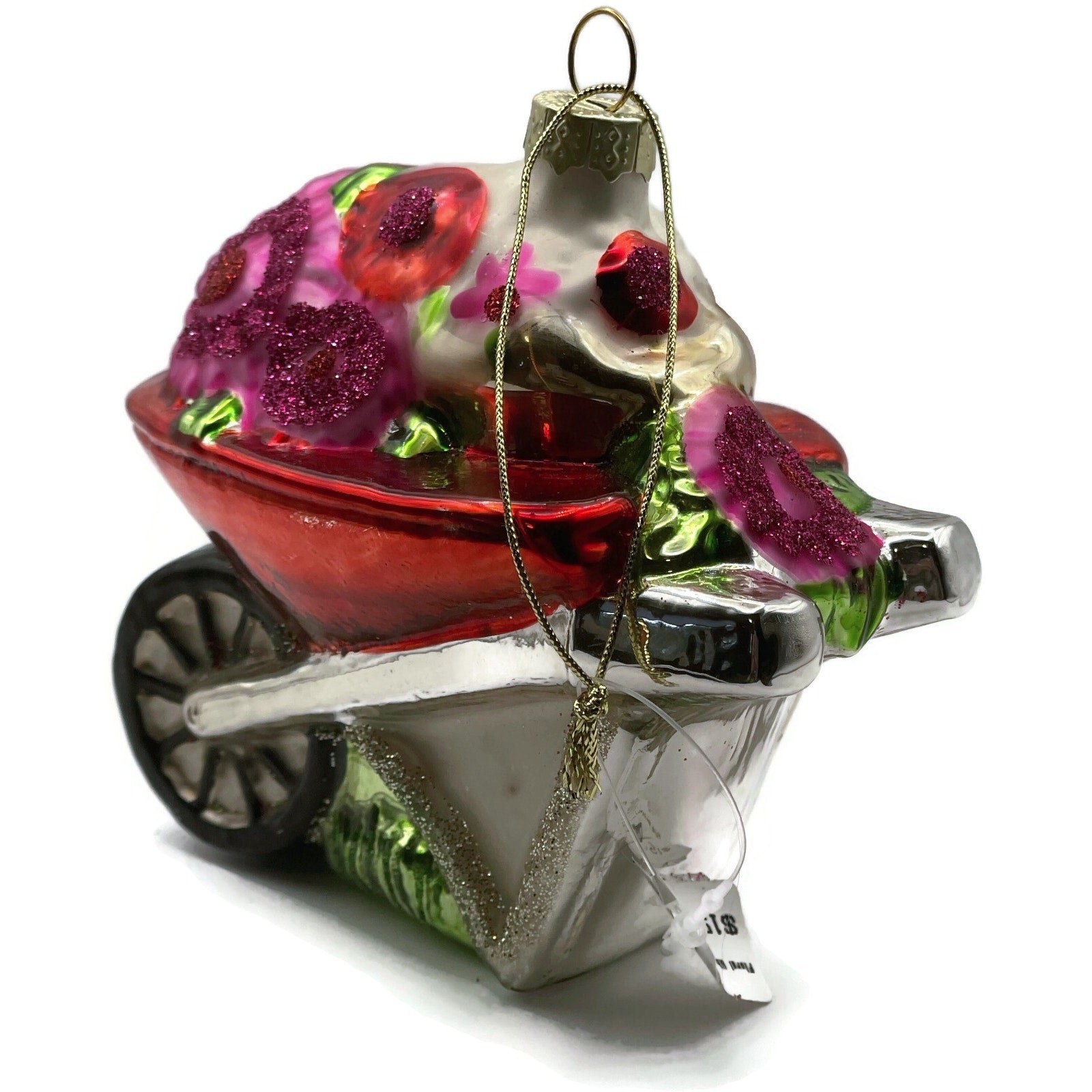 Ornament Floral Wheelbarrow Garden Flowers Blown Glass Christmas Holiday Tree