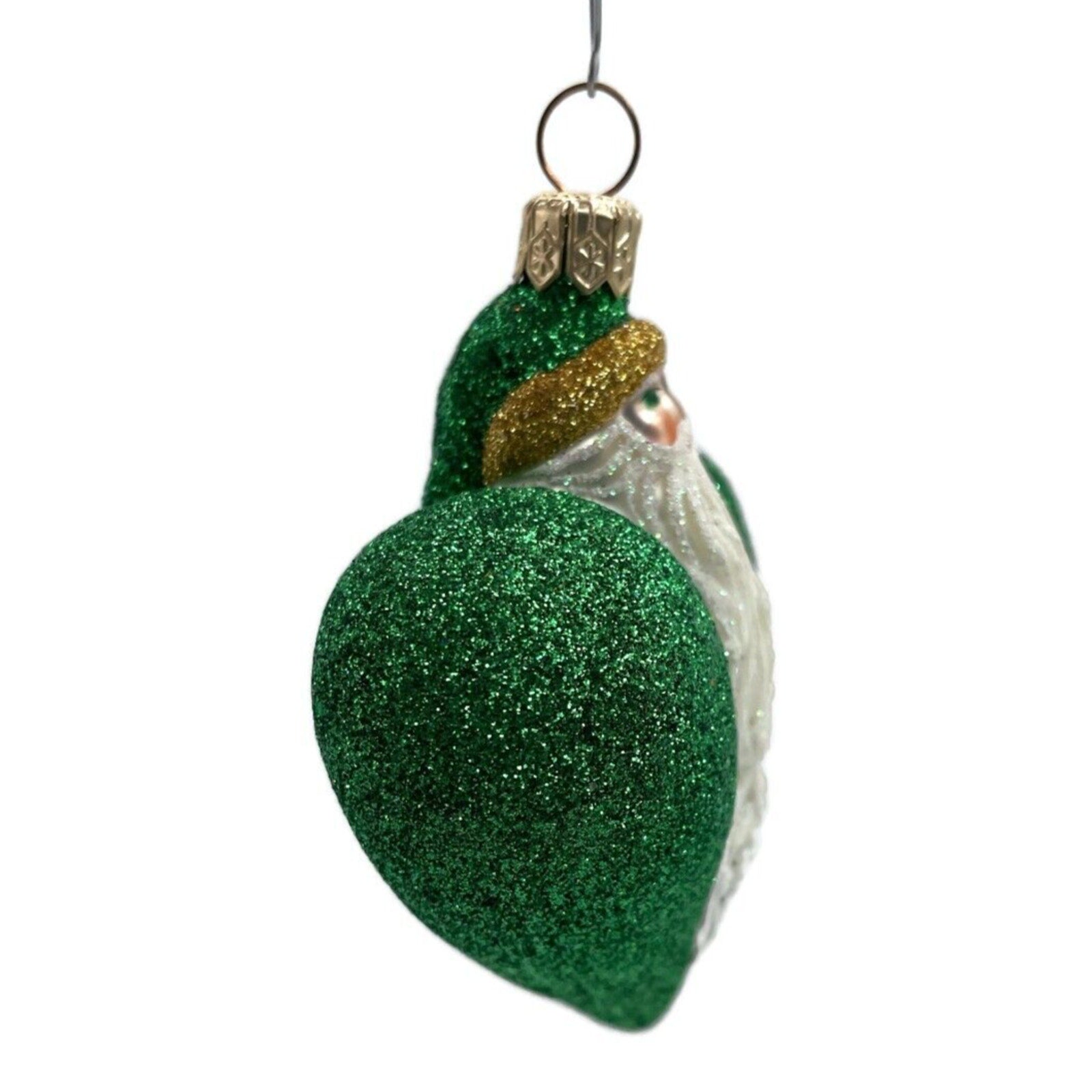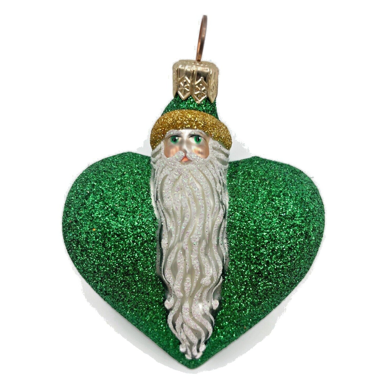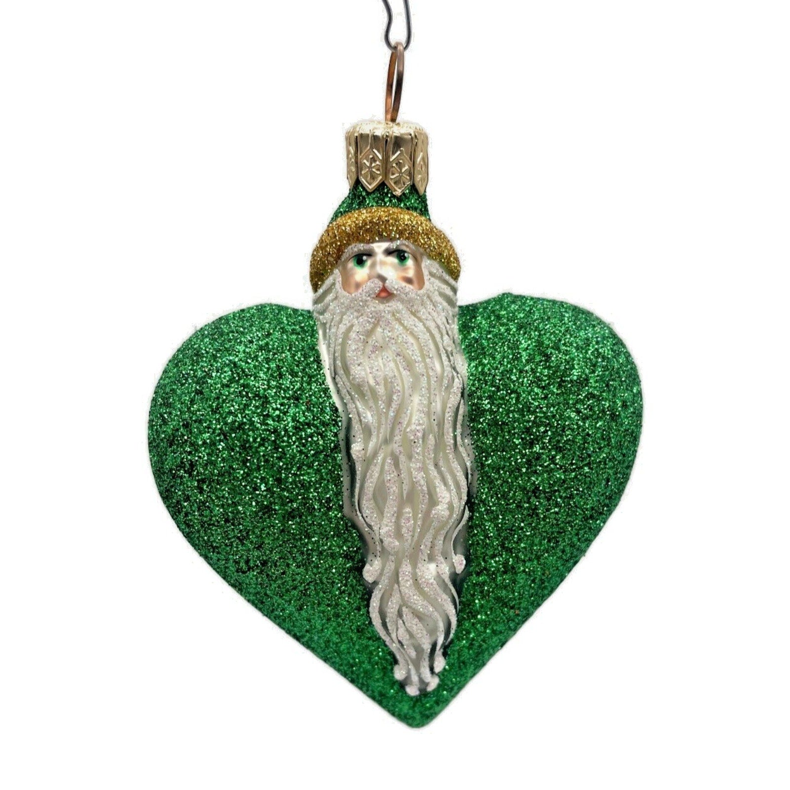 Ornament Patricia Breen Santa du Coeur Green Valentines Heart Glittered Holiday