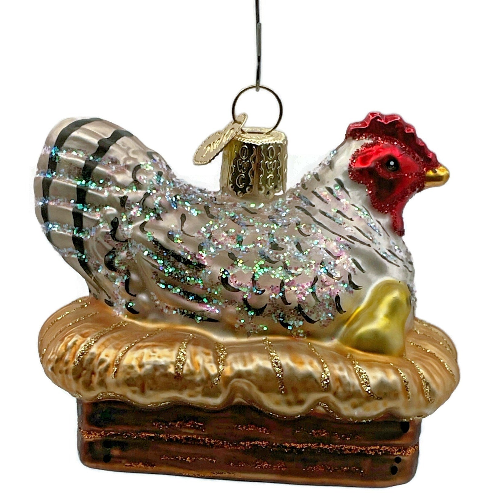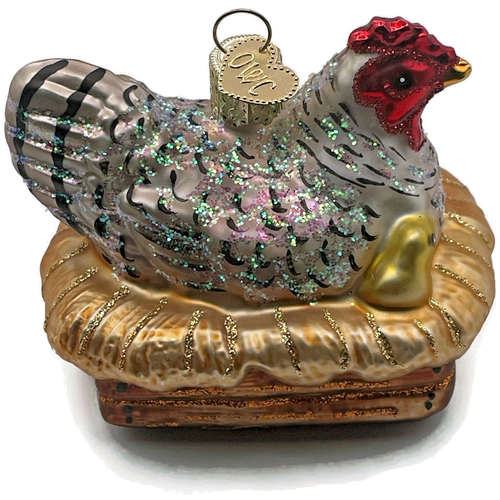 OWC Hen On Nest Farm Chicken Laying Egg Old World Christmas Holiday Ornament